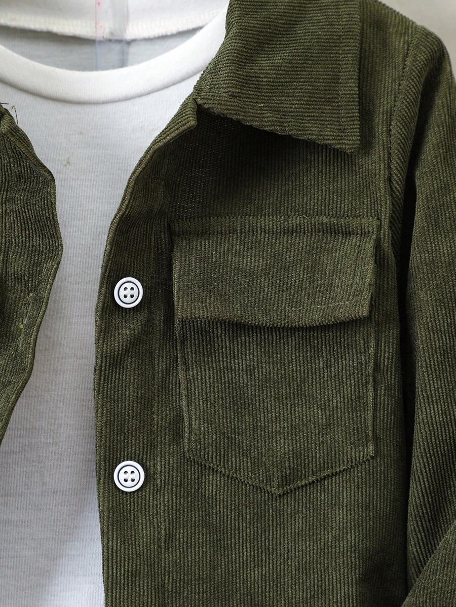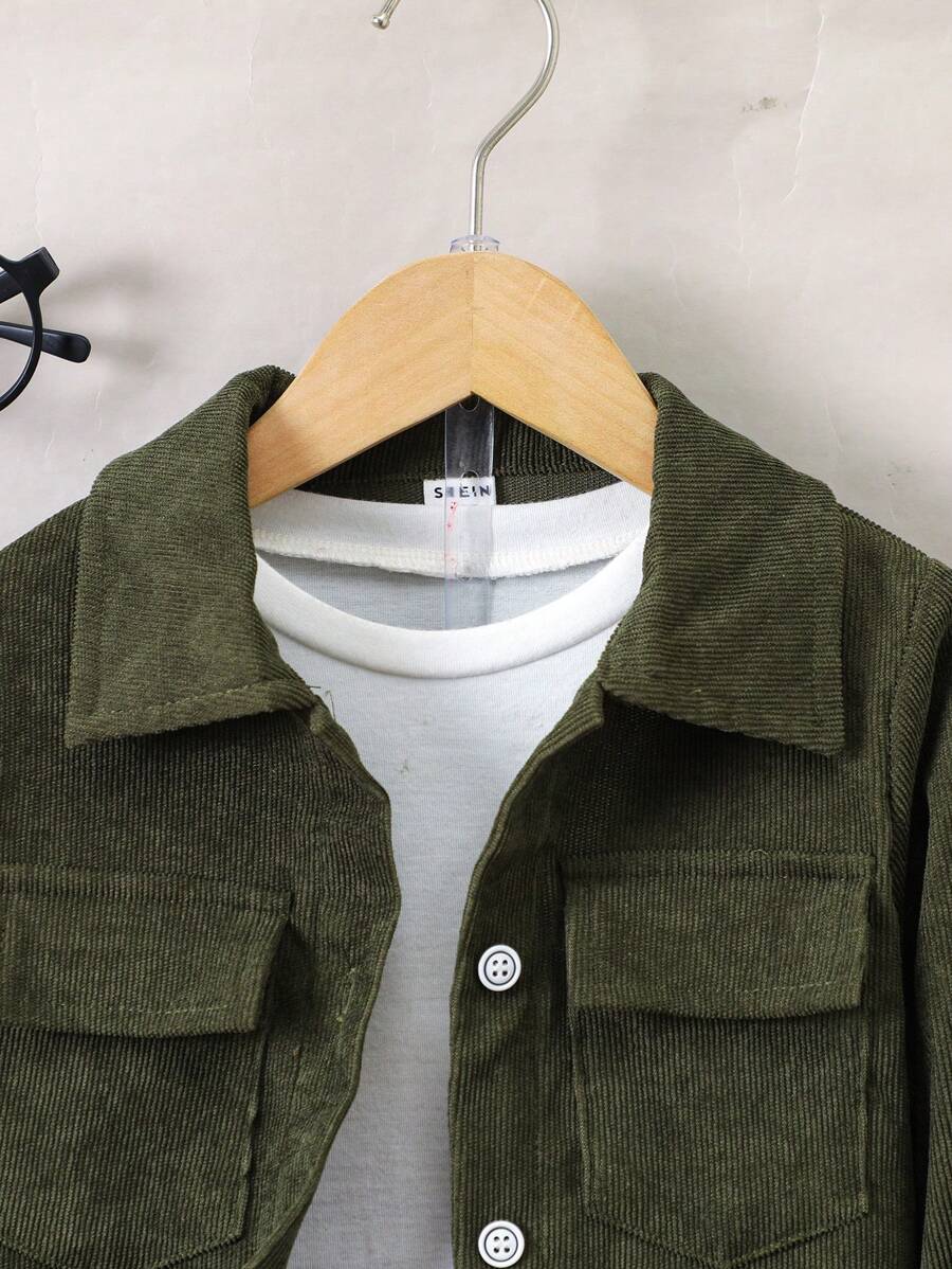 SHEIN Young Boy Flap Pocket Shirt & Pants Without Tee Green Baby Boys Sets