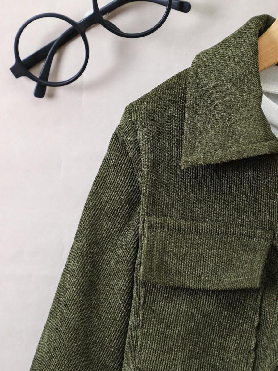 SHEIN Young Boy Flap Pocket Shirt & Pants Without Tee Green Baby Boys Sets quantity