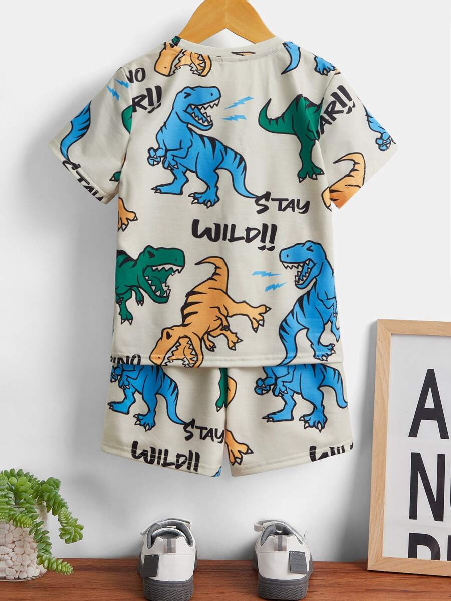 SHEIN Young Boy Letter & Dinosaur Print Tee & Shorts