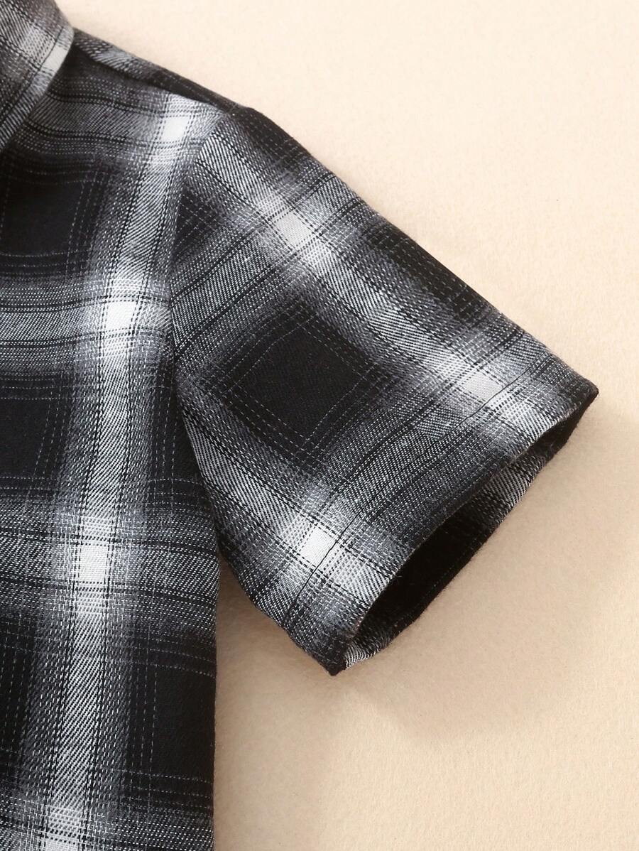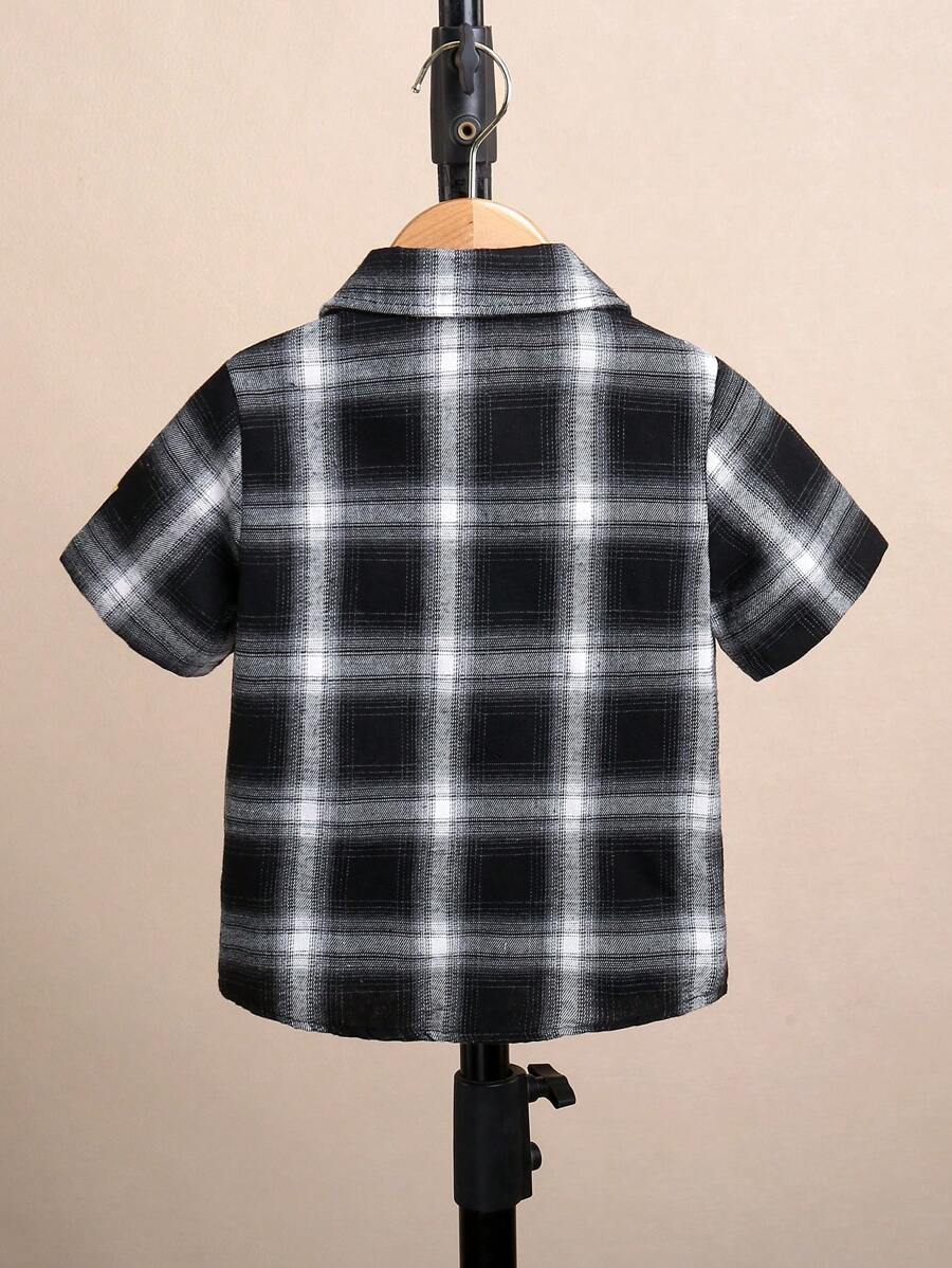 SHEIN Young Boy Patched Shirt With Buttoned Down Collar And Buttoned Cuffs quantity