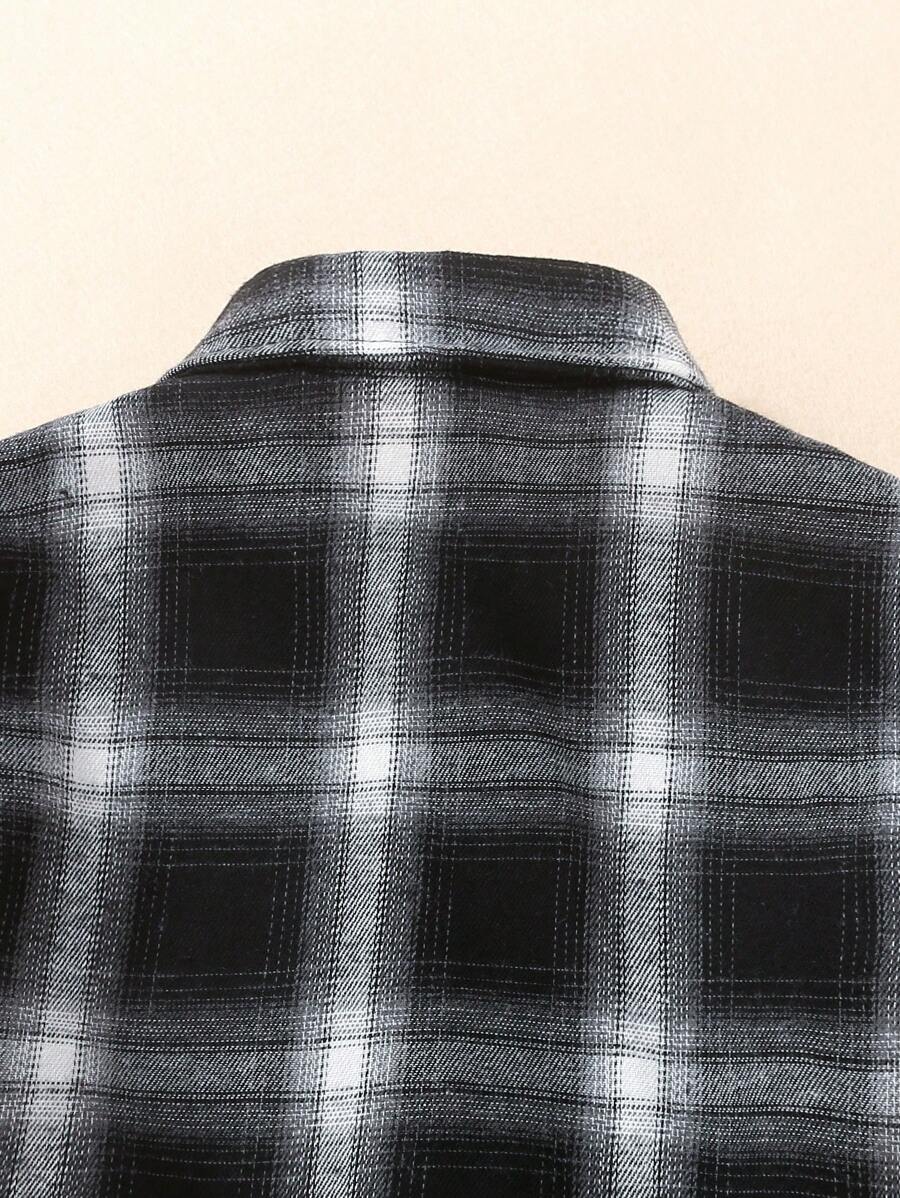 SHEIN Young Boy Patched Shirt With Buttoned Down Collar And Buttoned Cuffs