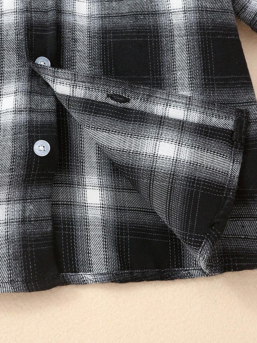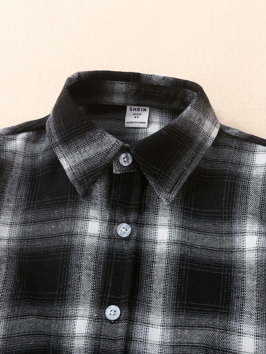 / SHEIN Young Boy Patched Shirt With Buttoned Down Collar And Buttoned Cuffs