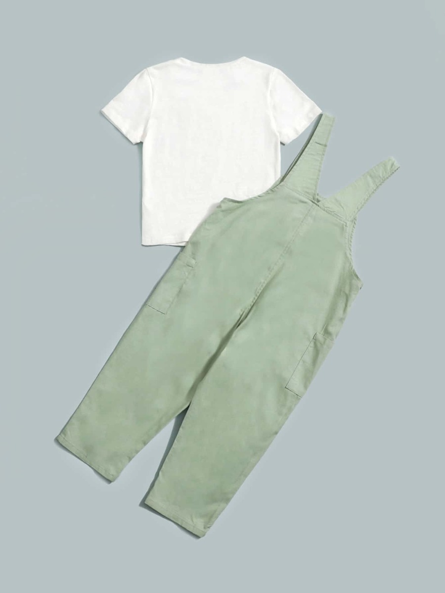 / SHEIN Young Boy Round Neck Tee & Letter Pattern Overalls