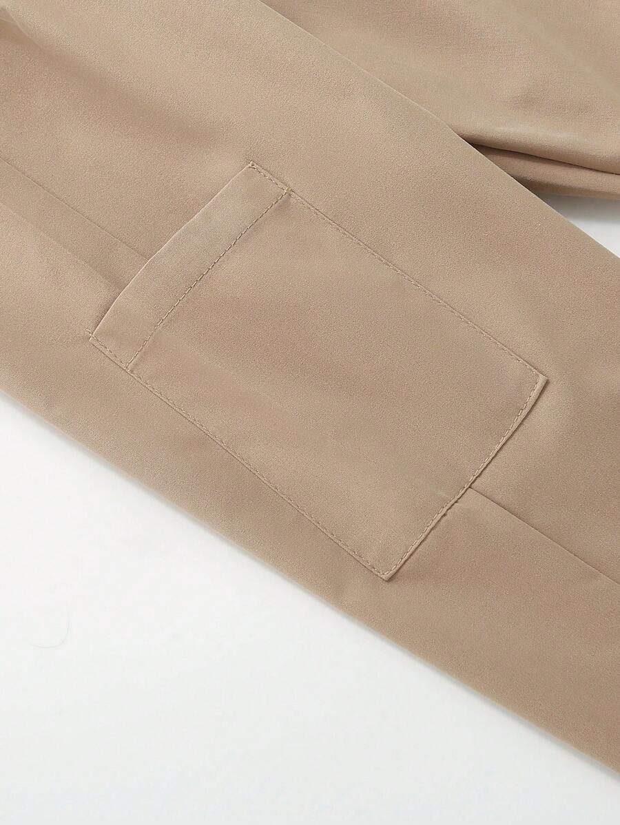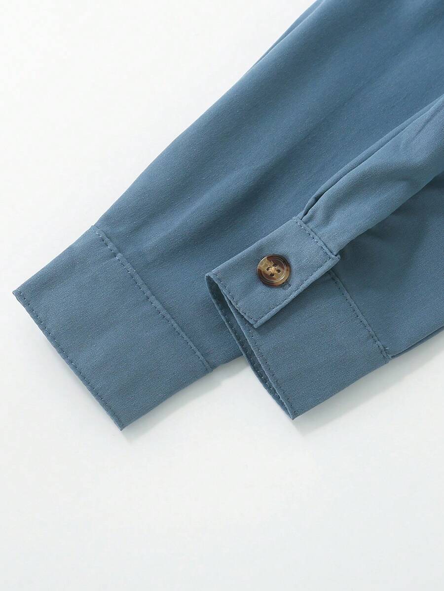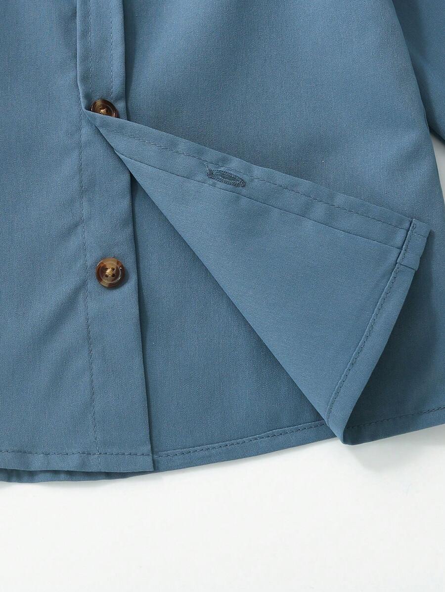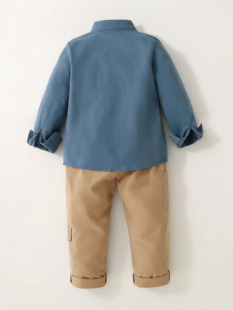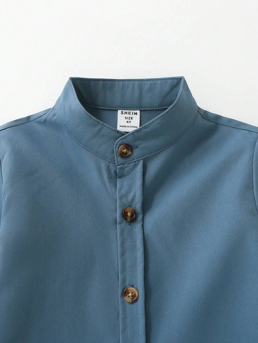 SHEIN Young Boy Stand Collar Long Sleeve Shirt And Elastic Waist Pants 2pcs/Set