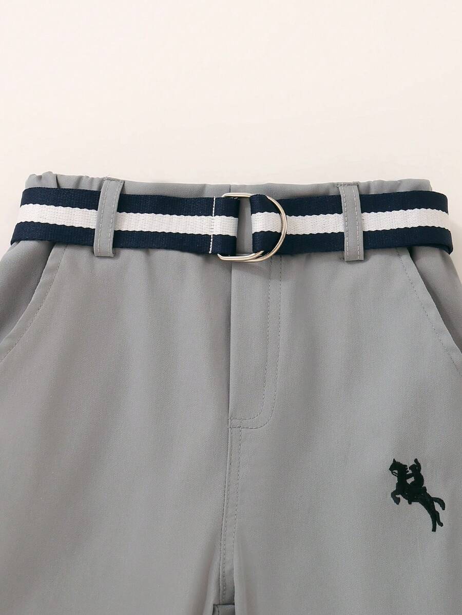 / SHEIN Young Boys Horse Print Shirt & Belted Pants