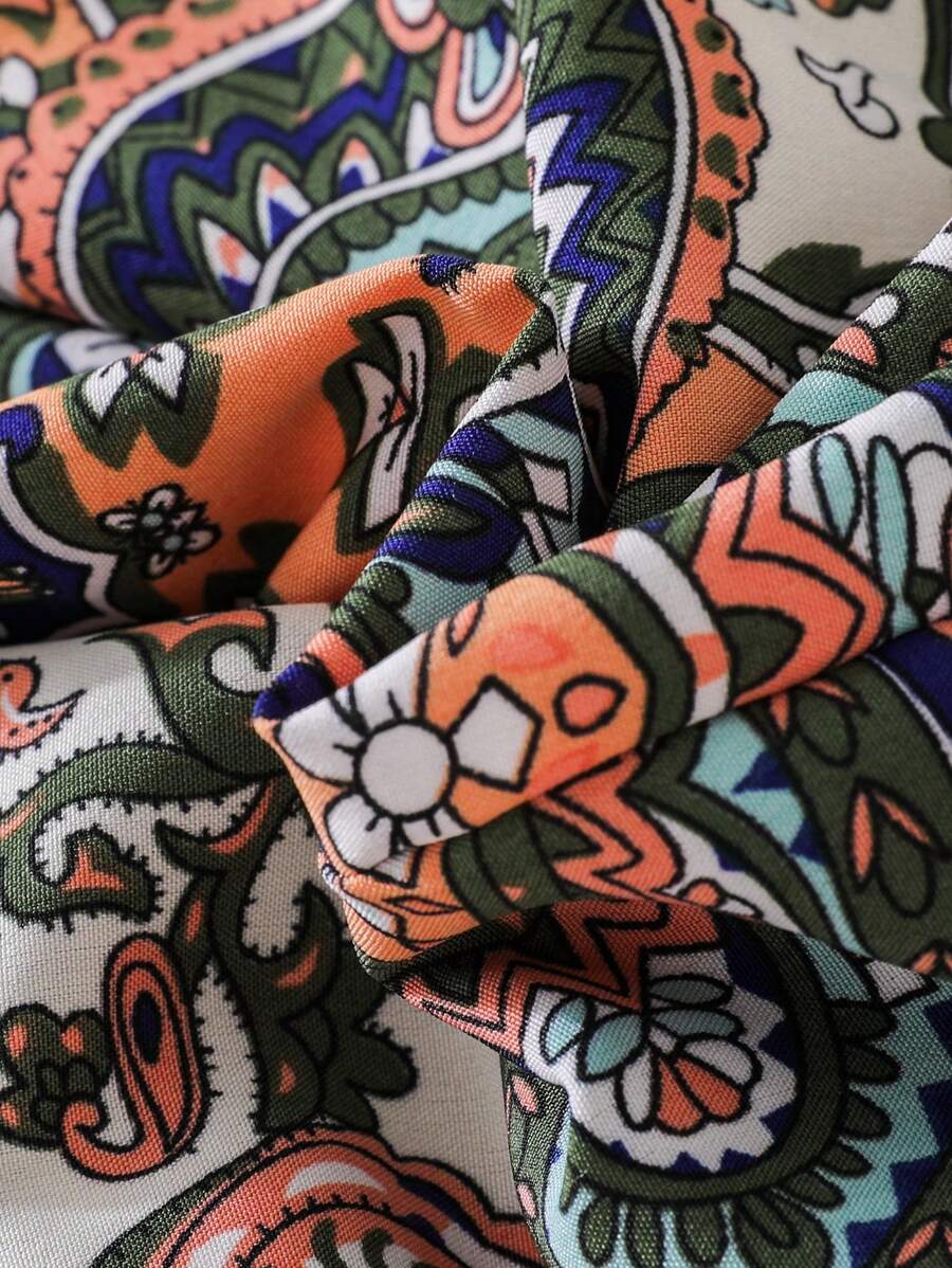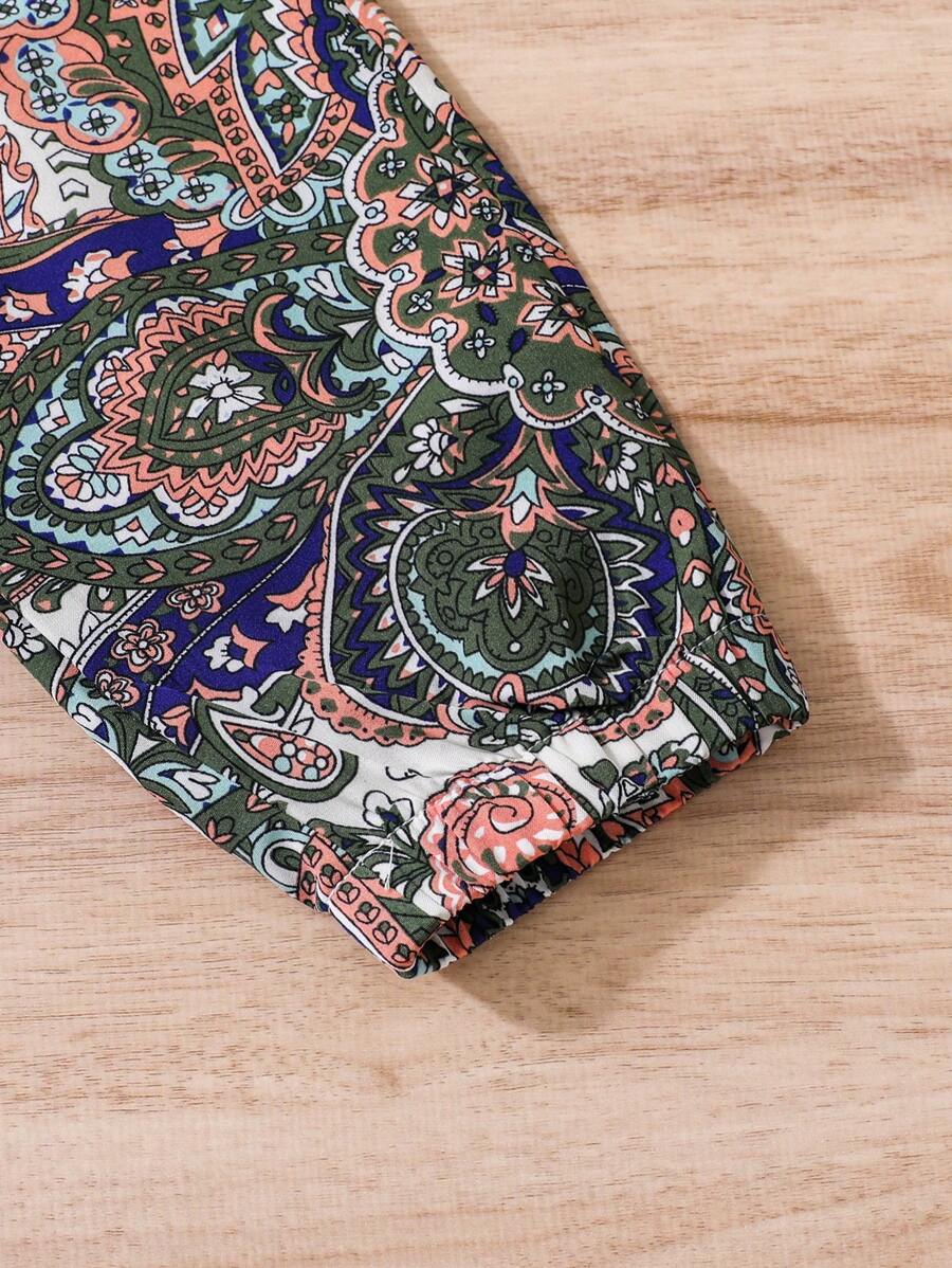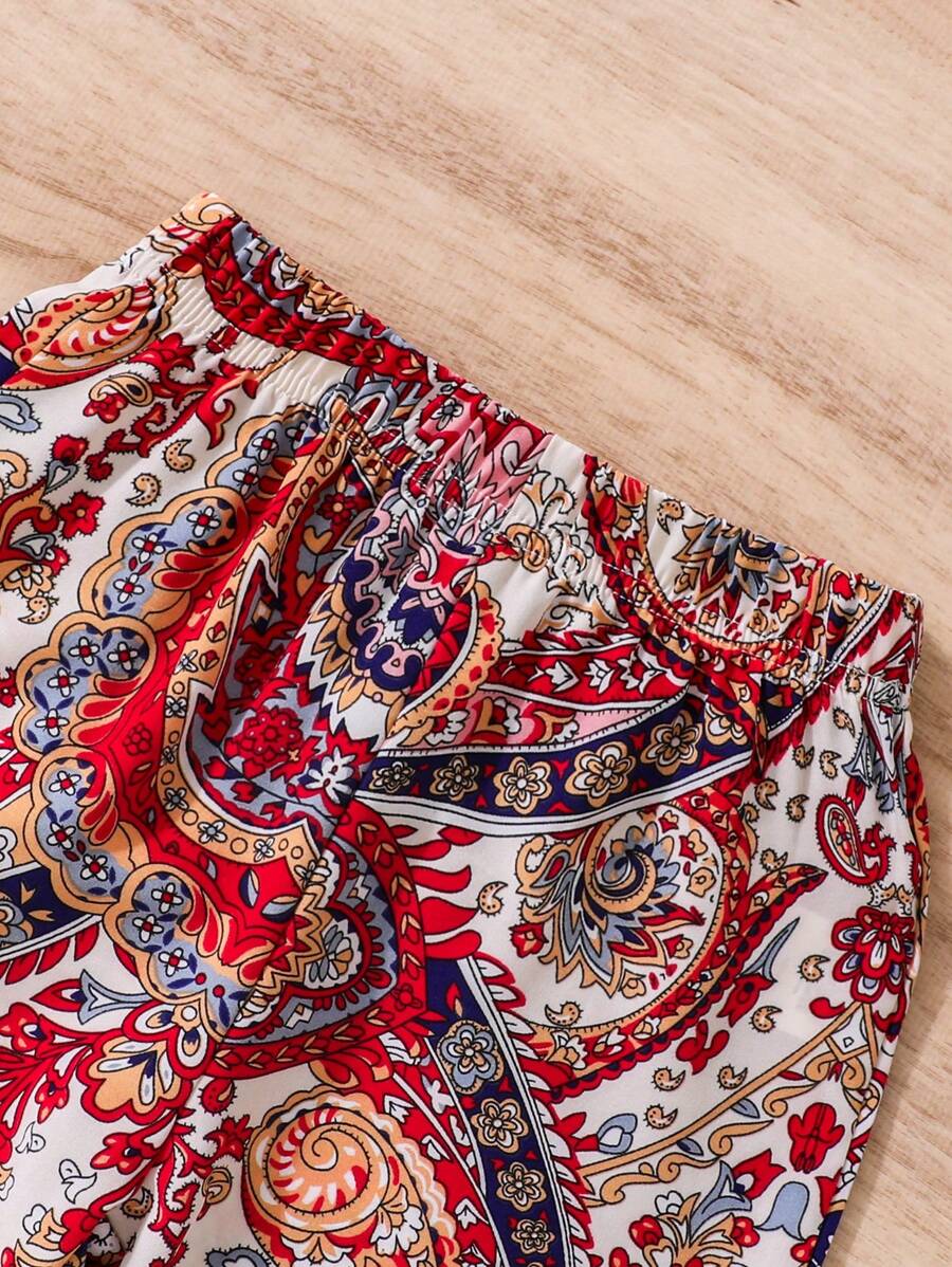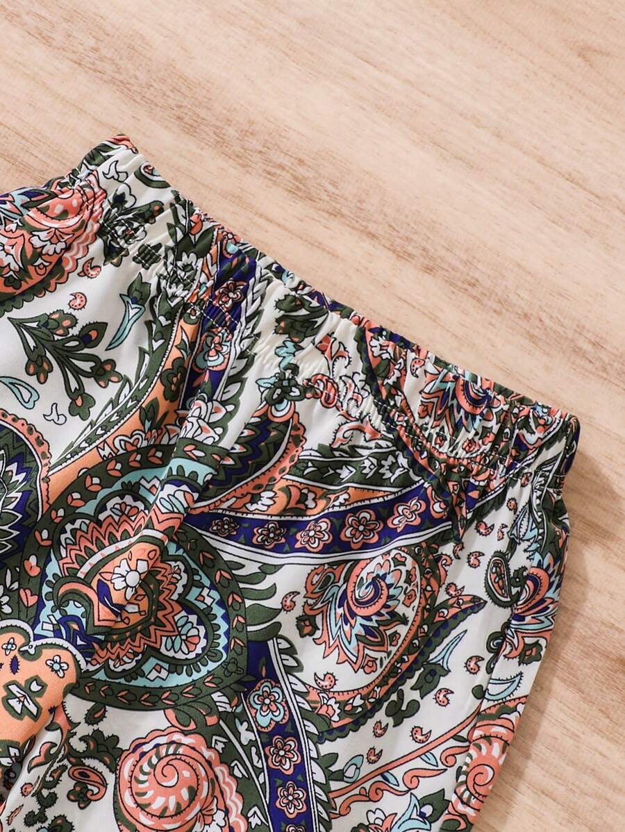 SHEIN Young Girl 2pcs Paisley Print Elastic Waist Cuffed Pants