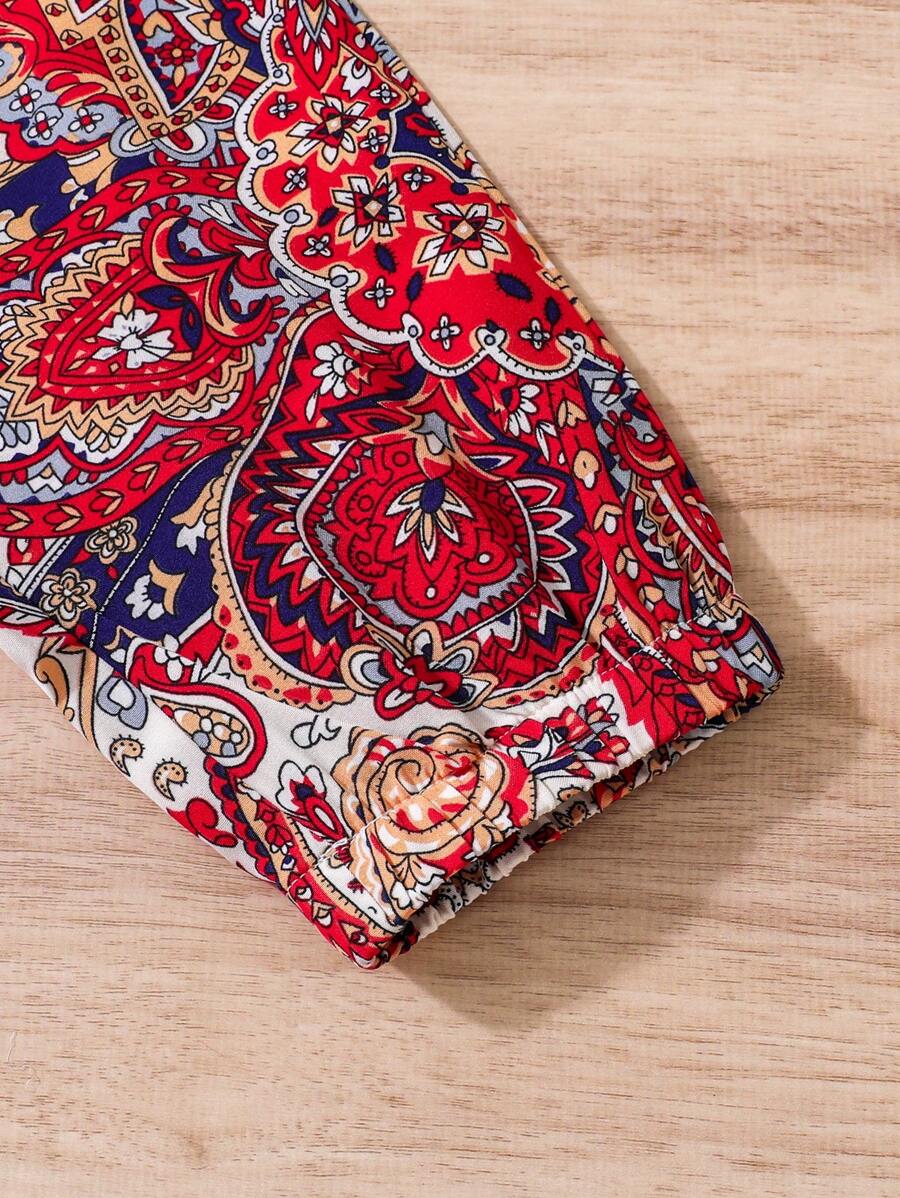 / SHEIN Young Girl 2pcs Paisley Print Elastic Waist Cuffed Pants