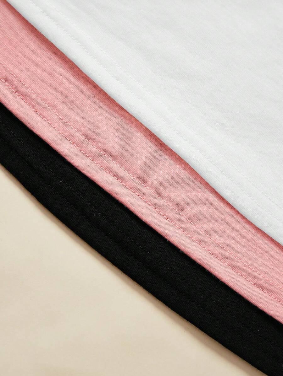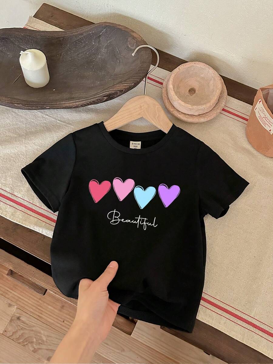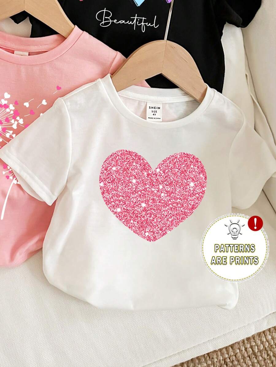 SHEIN Young Girl 3pcs Casual And Simple Cartoon Heart Patterned T-Shirt Set, Suitable For Summer