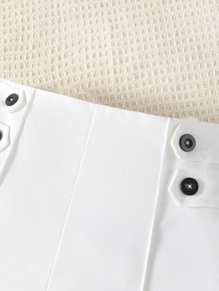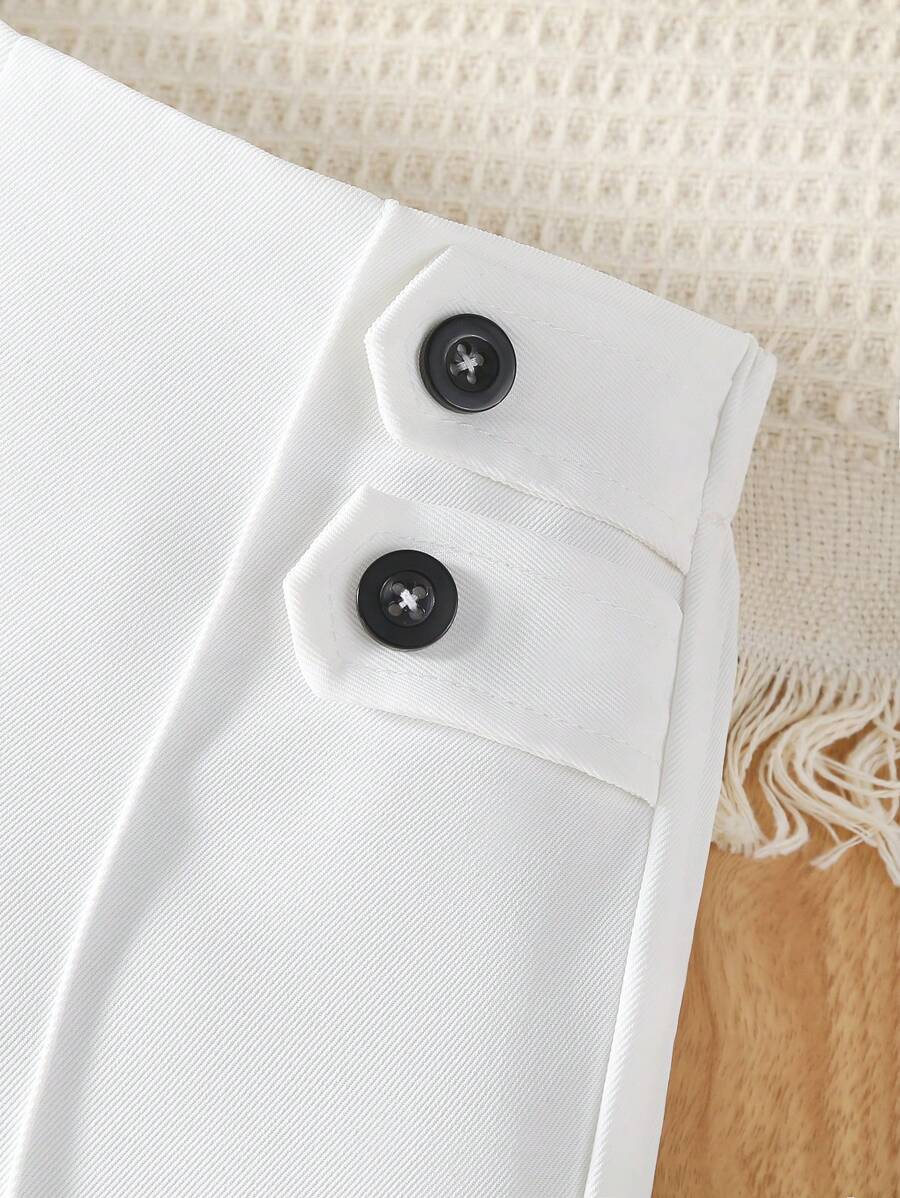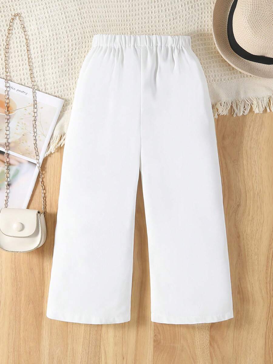 SHEIN Young Girl Button Detail Wide Leg Pants