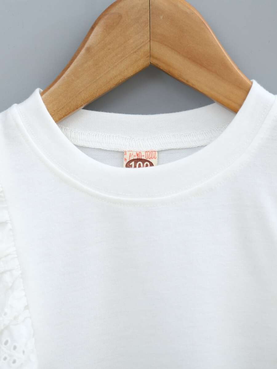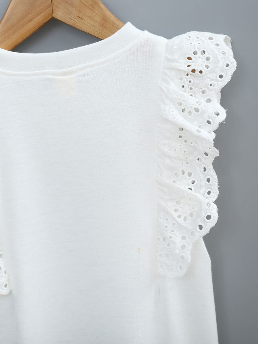 SHEIN Young Girl Contrast Eyelet Embroidery Ruffle Tank Top