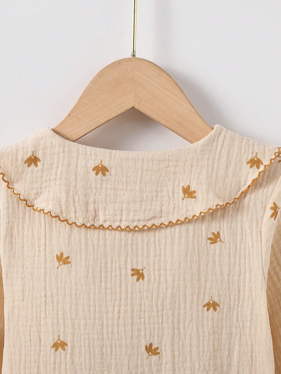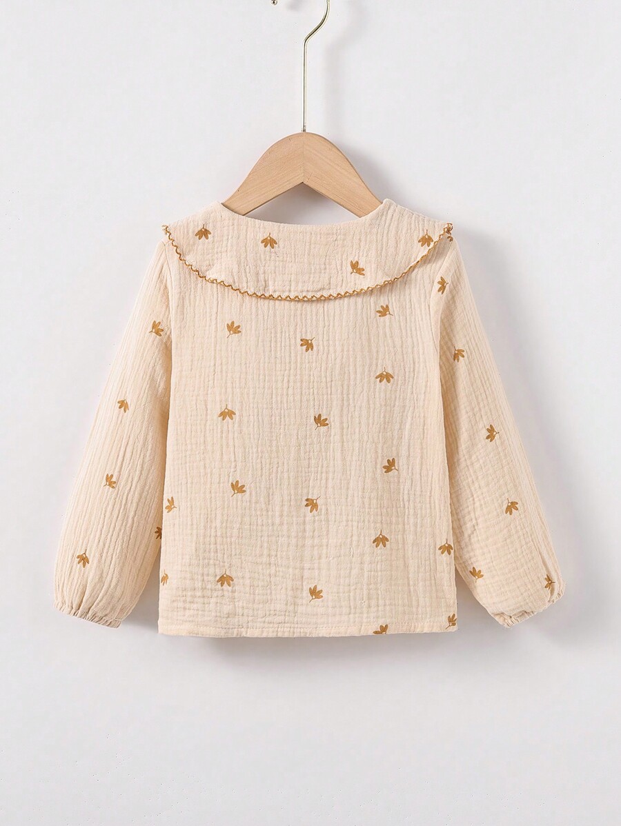 / SHEIN Young Girl Floral Embroidery Peter Pan Collar Lantern Sleeve Blouse