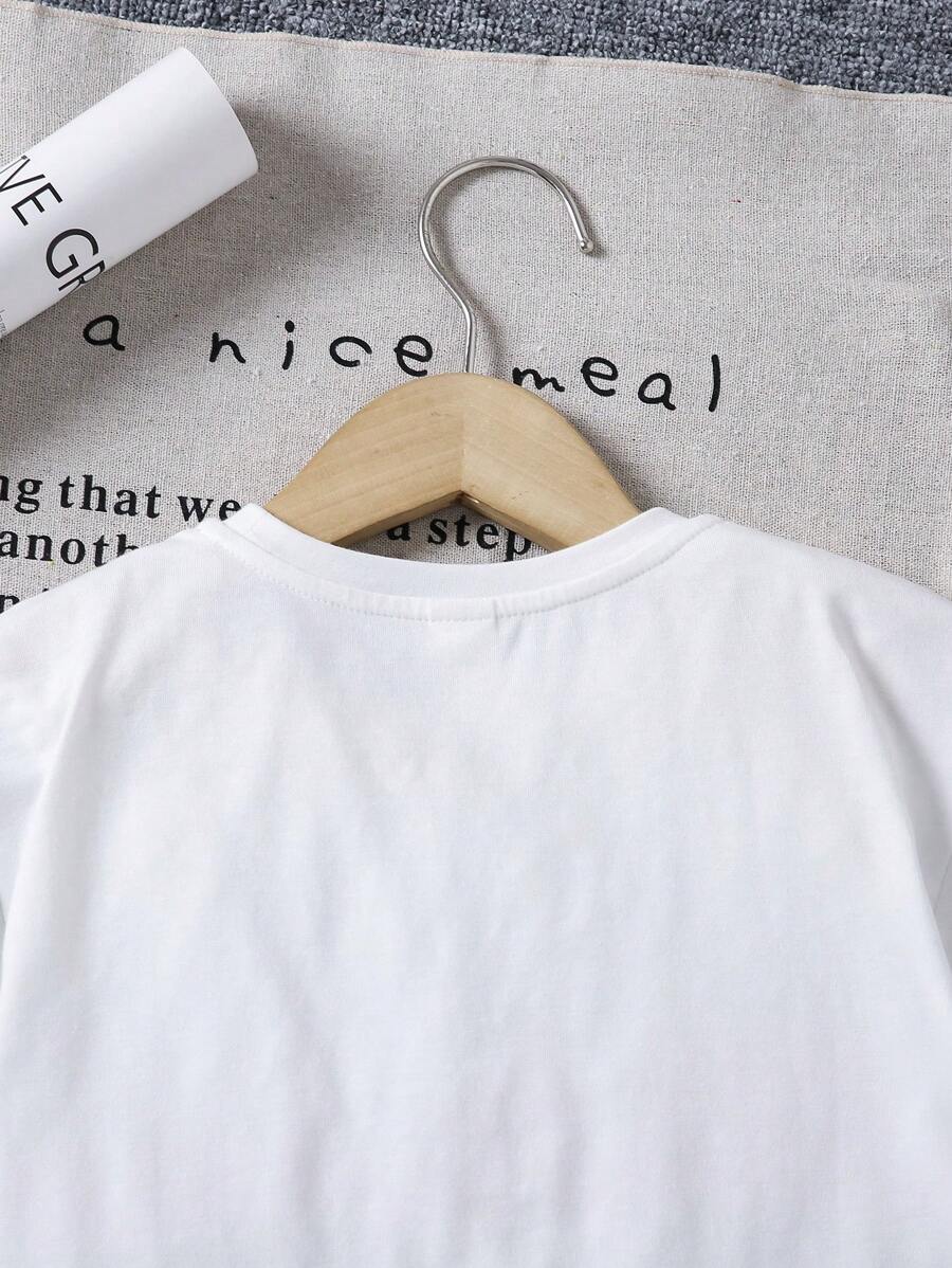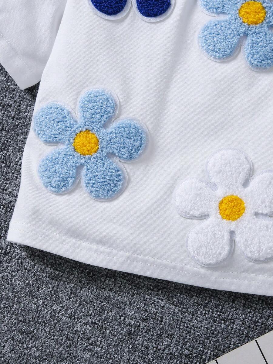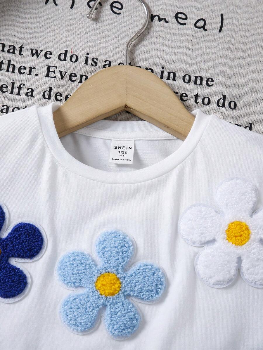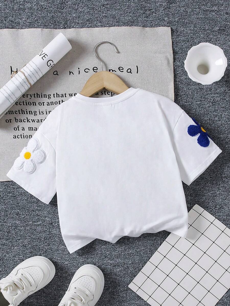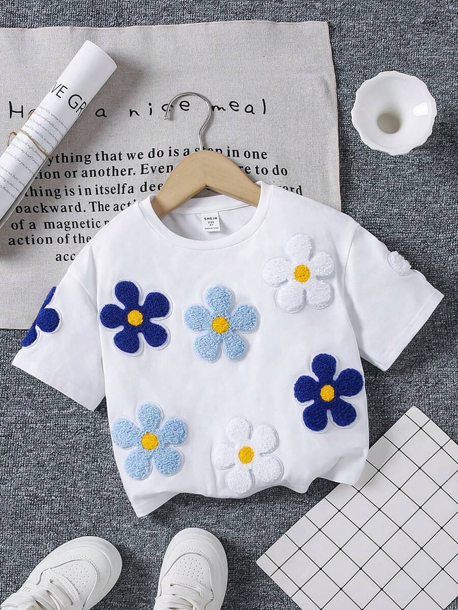SHEIN Young Girl Loose Fit Cute Floral Print Short Sleeve T-Shirt With Round Neckline And Drop Shoulders