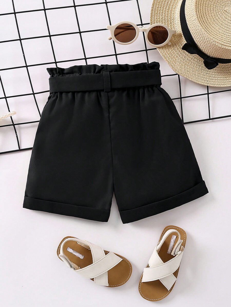 SHEIN Young Girl Paperbag Waist Roll Up Hem Belted Shorts