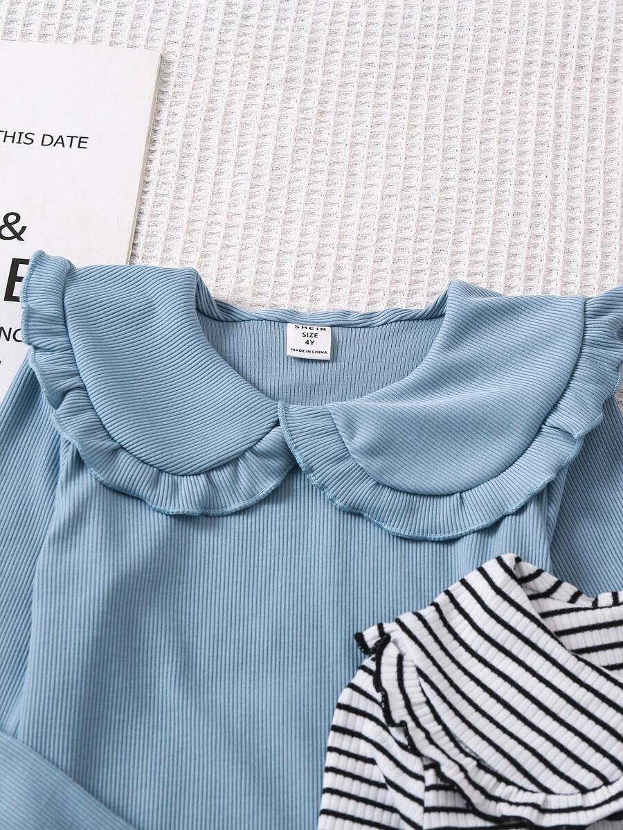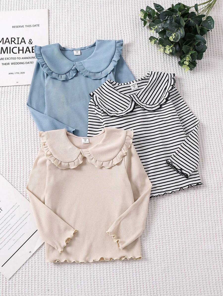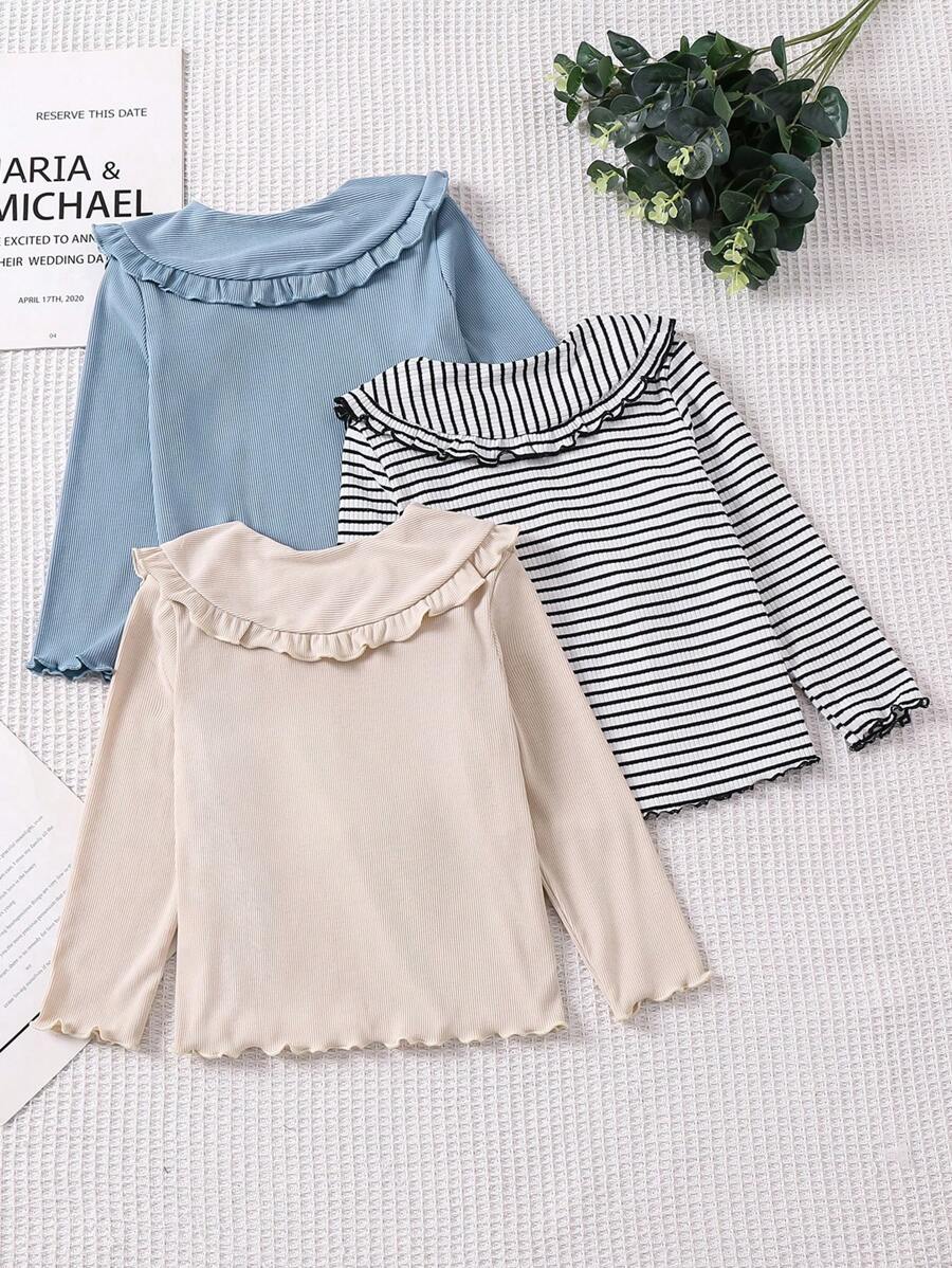 SHEIN Young Girl Relaxing And Comfortable Ruffle Neck T-Shirt Set Of 3