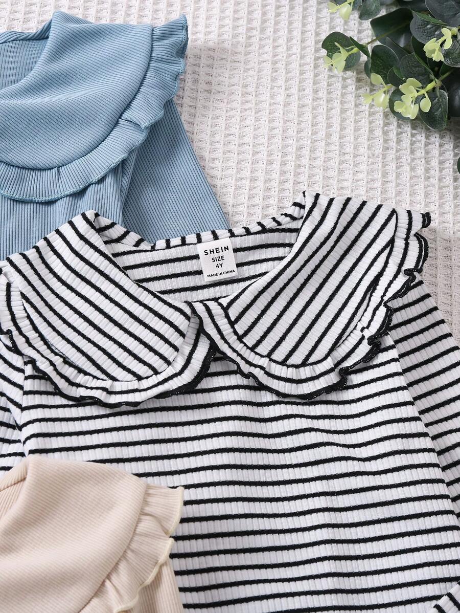 / SHEIN Young Girl Relaxing And Comfortable Ruffle Neck T-Shirt Set Of 3