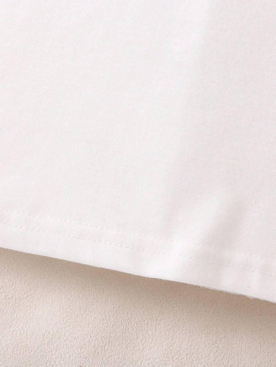 SHEIN Young Girl Solid Contrast Mesh Ruffle Trim Tee quantity