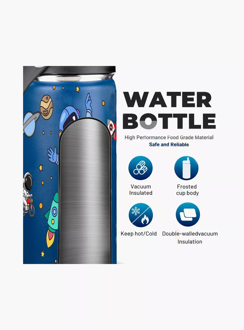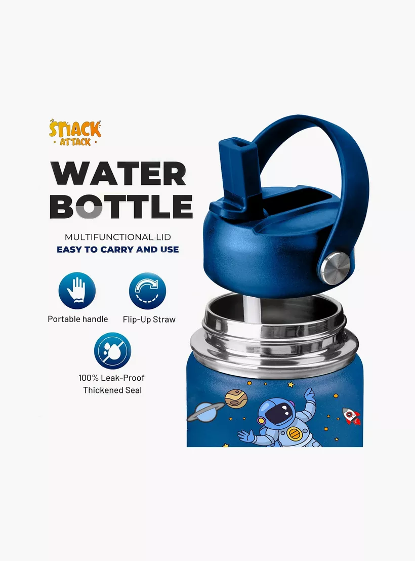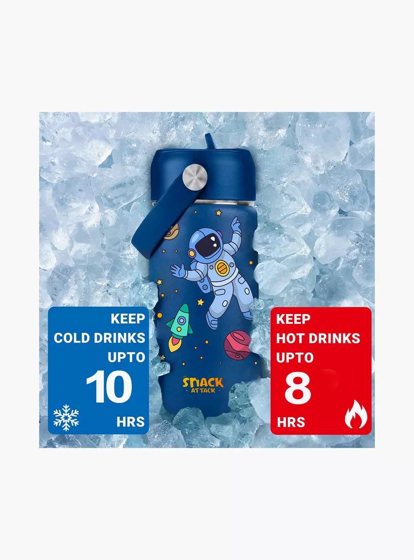 Snack Attack Insulated Water Bottle with Straw, Lid & Cleaning Brush – Astro – Blue – 350 ml