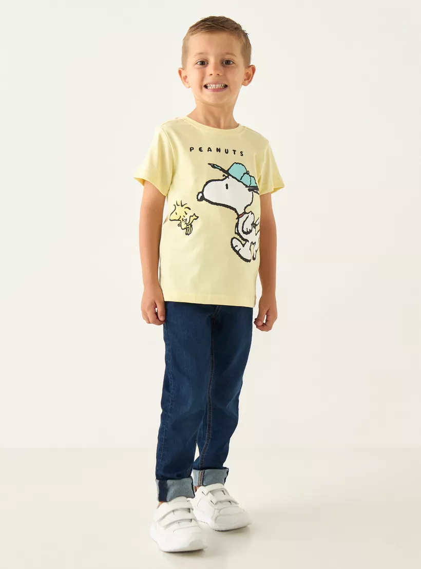 Snoopy Print Crew Neck T-shirt with Short Sleeves