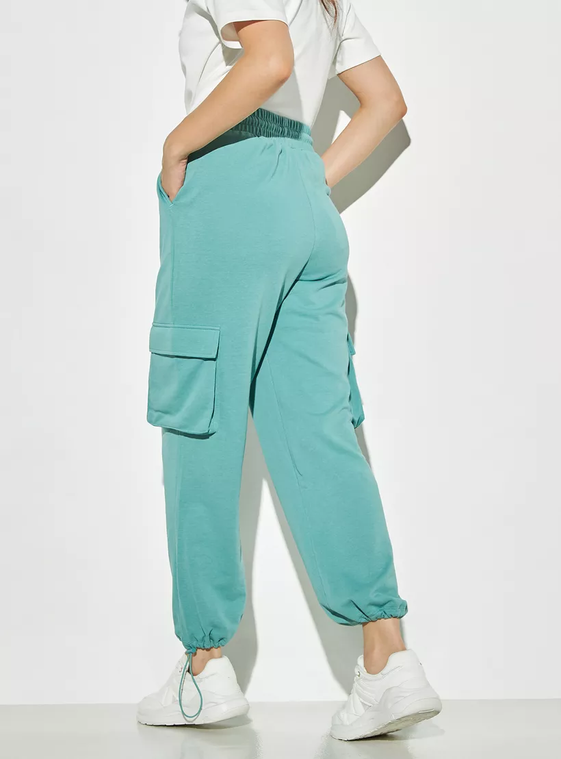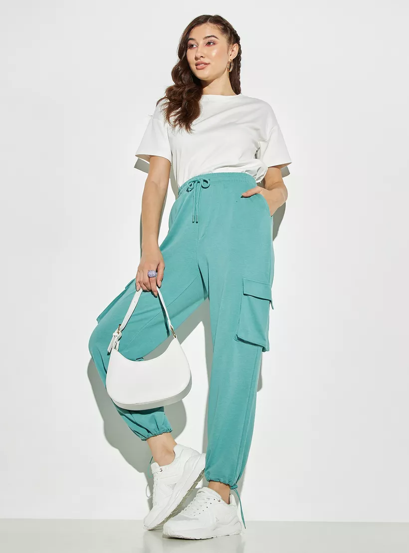 Solid Cargo Joggers with Drawstring Closure and Pockets