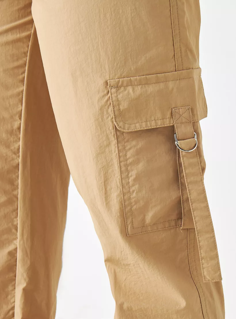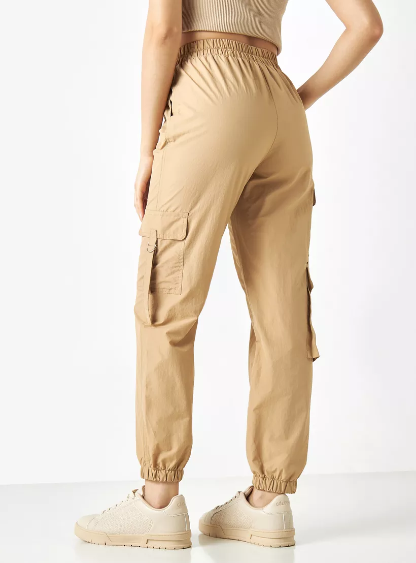 Solid Cargo Pants with Elasticated Waistband and Pockets