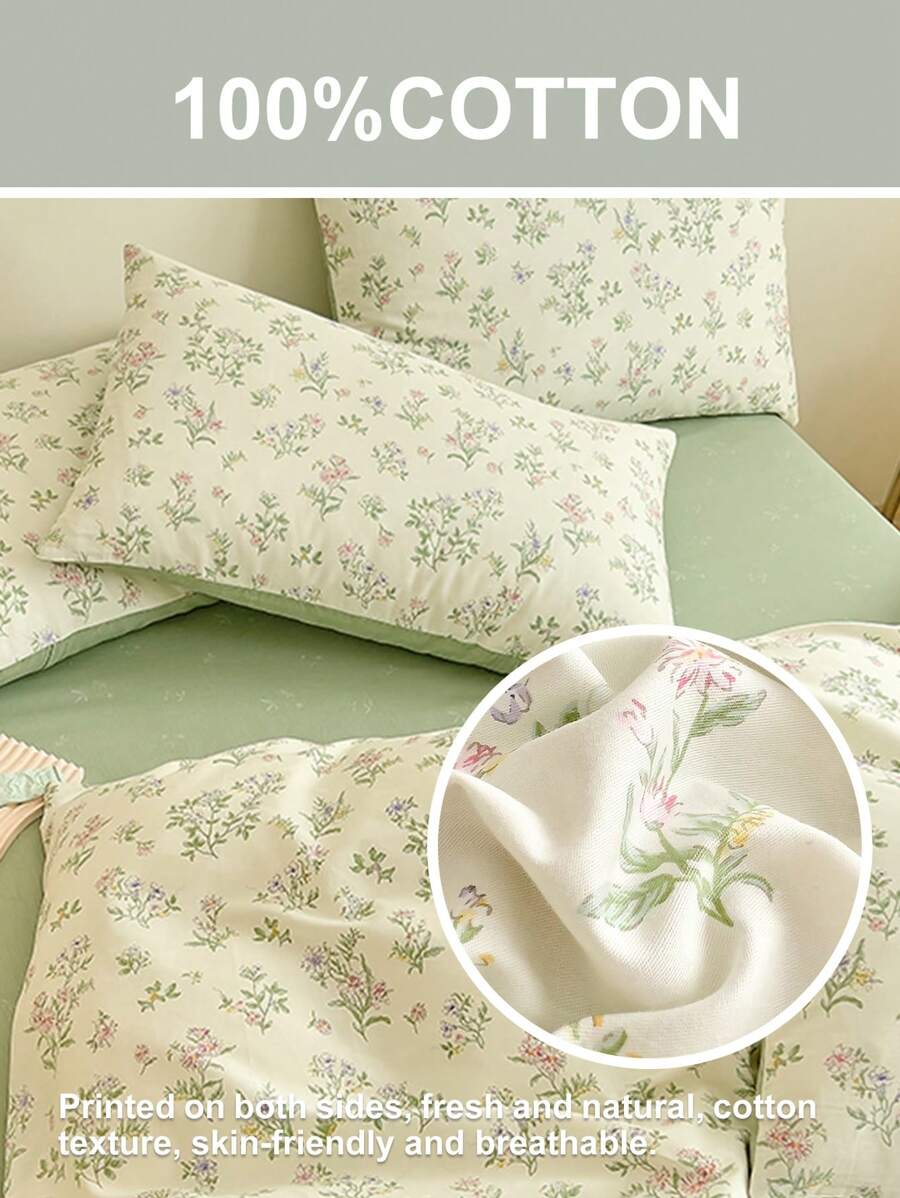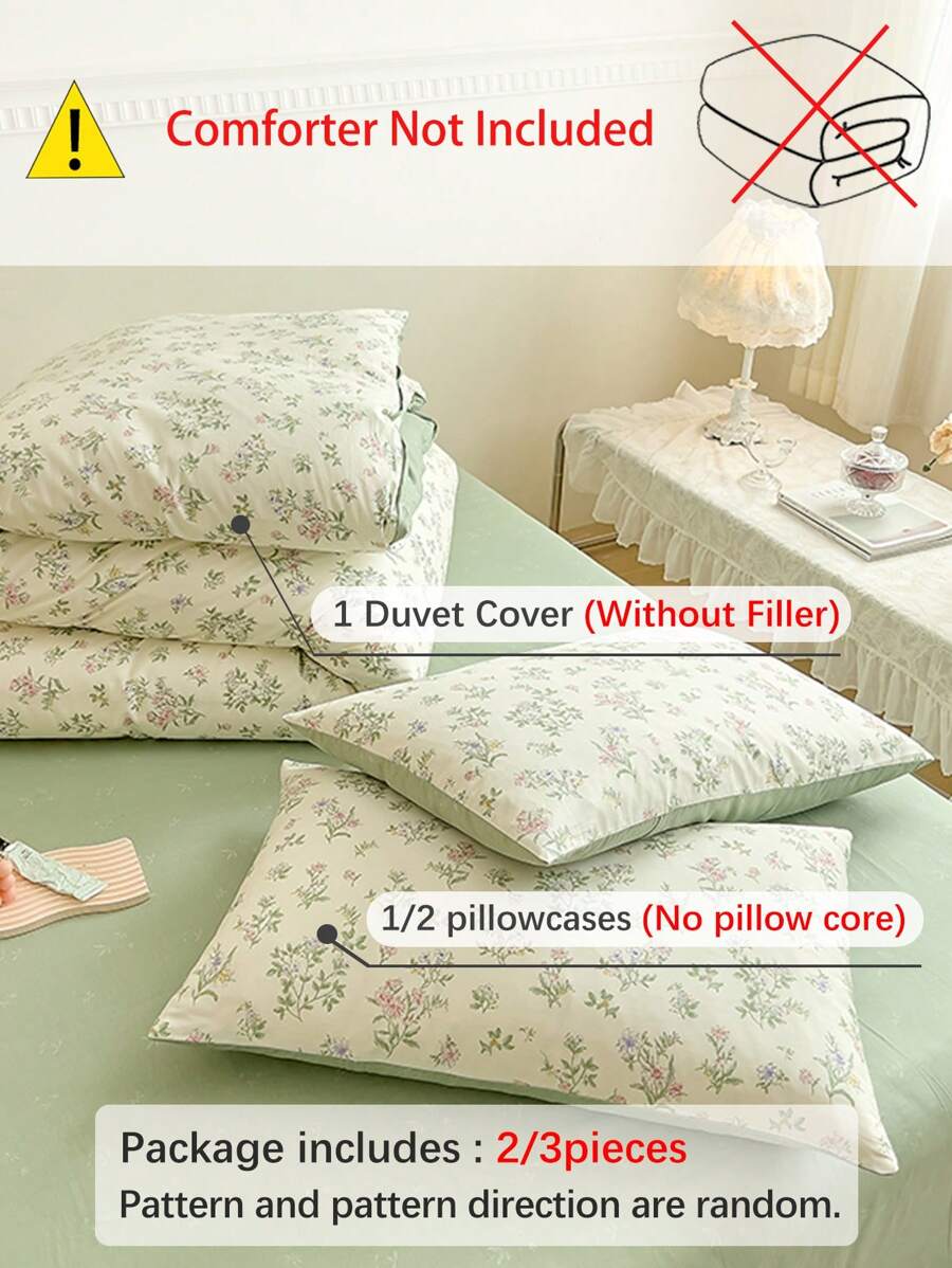 2/3pcs 100%Cotton, Floral Duvet Cover Set, Bedding, Super Soft And Skin-Friendly Duvet Cover, Washed Duvet Cover, Floral Printed Pattern Comforter Set And Pillow Case, Quilt Core Not Included, Fits For Twin Full King Queen All Size Beds, Suitable For All Seasons, Home Decoration, Bedding Gifts, Machine Washable