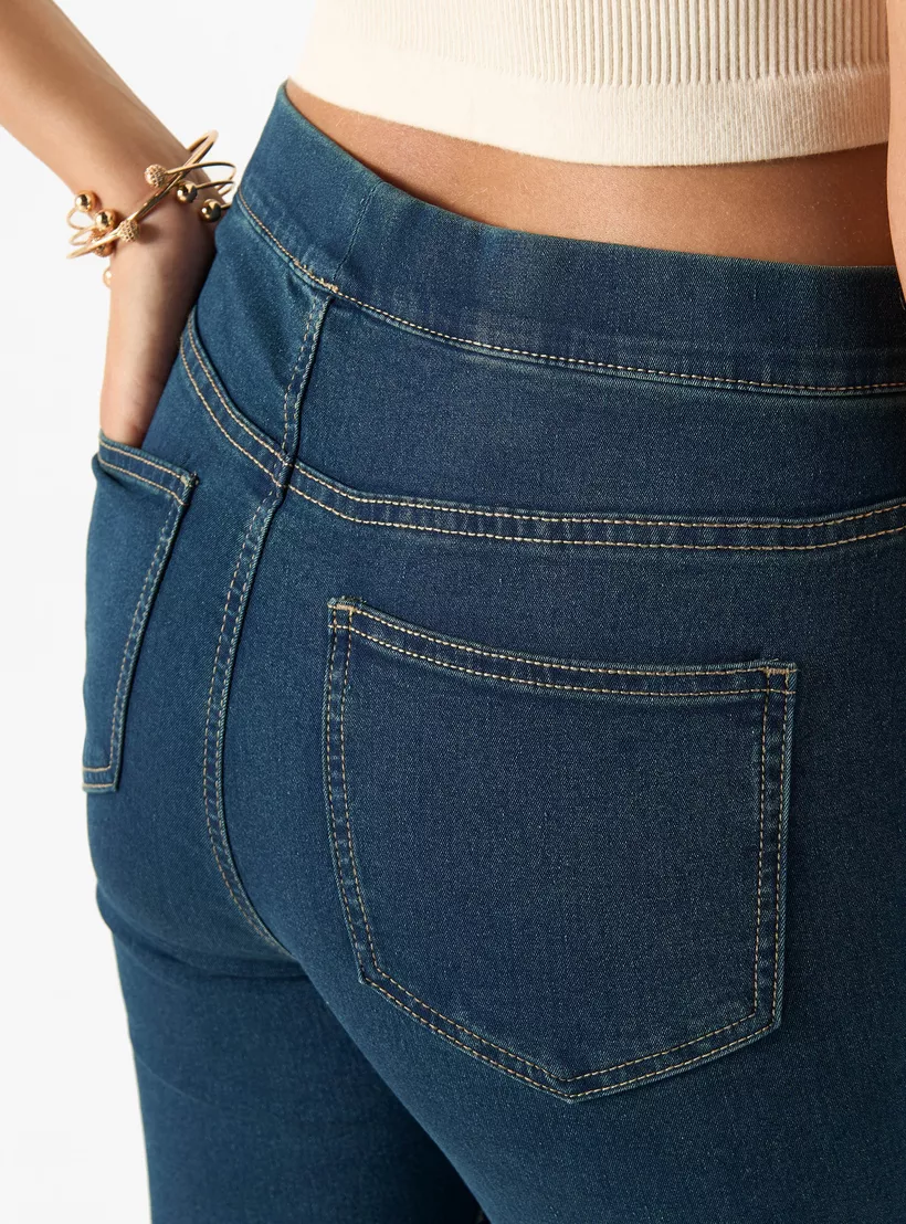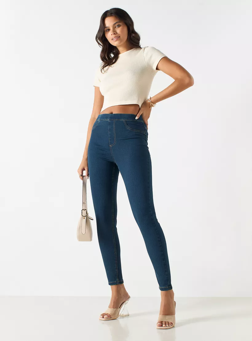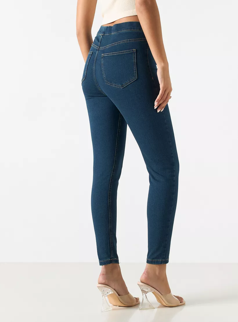 Solid Denim Jeggings with Pockets