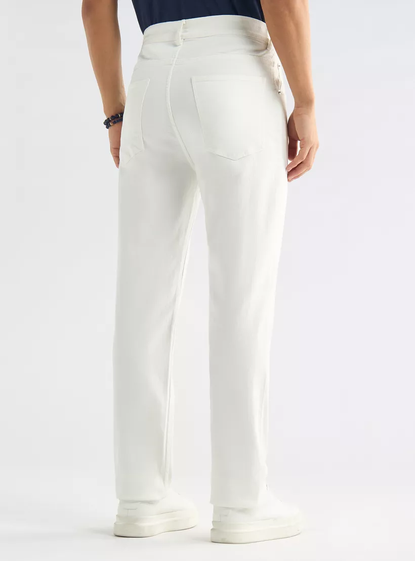 Experience the perfect combination of style and comfort with this pair of pants. Designed for the modern man, these pants feature a regular fit and plain design. Made from a durable cotton blend, they also have a flexi waist for added comfort and convenience.
