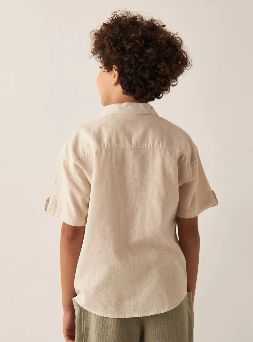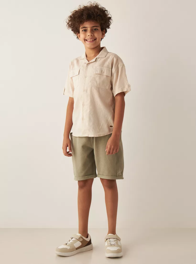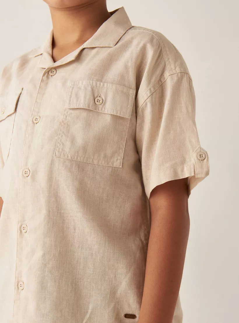 Solid Shirt with Camp Collar and Pockets