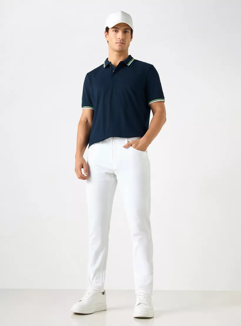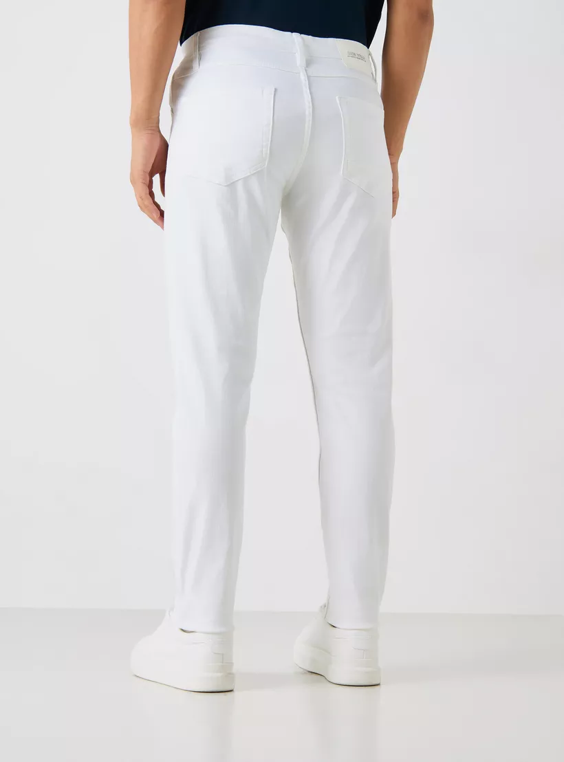 Smarten your casual style with this classic pair of jeans in a skinny-fit construction. It highlights a versatile tone and is well-made from quality material, lending long-lasting comfort. The key features are the button closure across the waistband and pockets. By buying cotton products from Splash, you’re supporting more responsibly sourced cotton farming. Better Cotton is sourced via mass balance. Learn more at bettercotton.org/massbalance