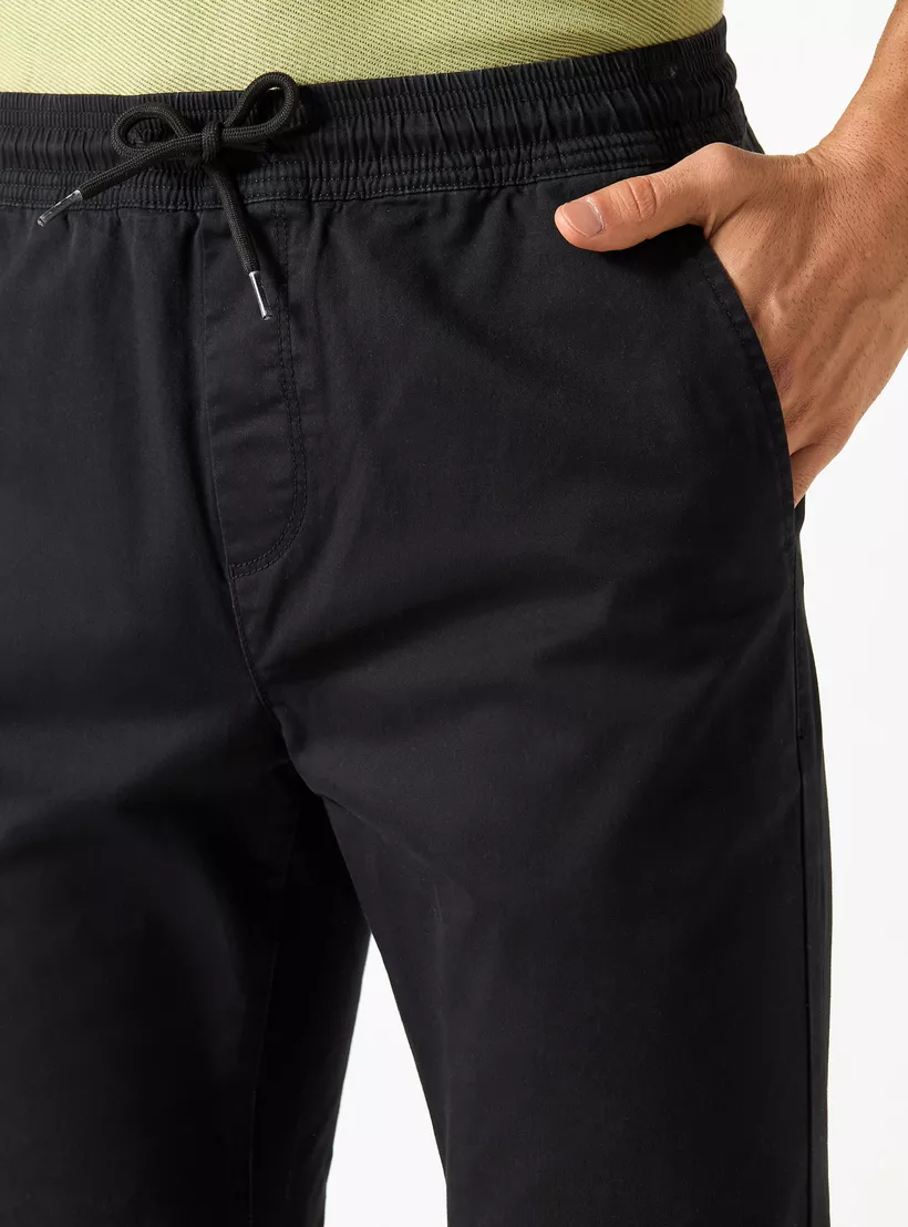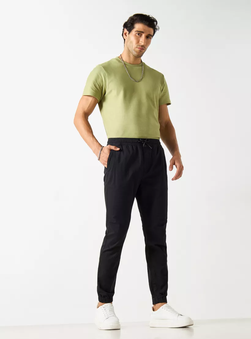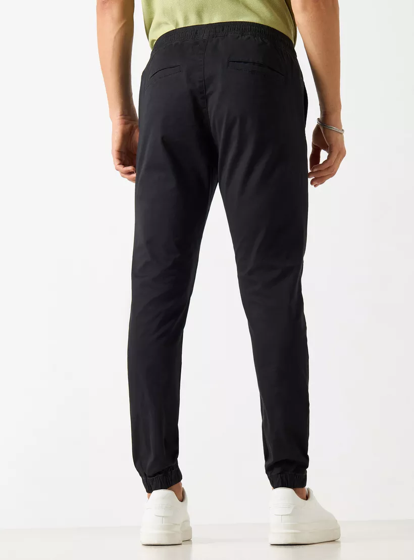 Solid Slim Fit Joggers with Drawstring Closure and Pockets