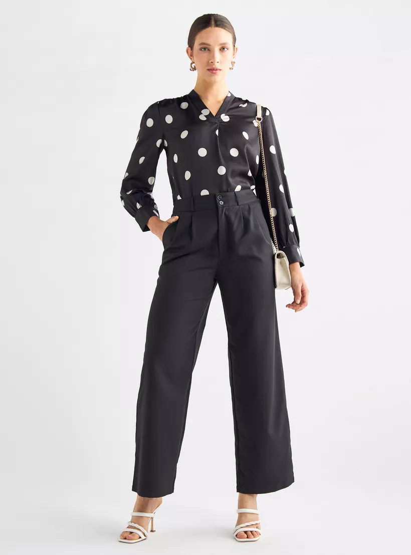 Solid Wide Leg Pants with Pockets