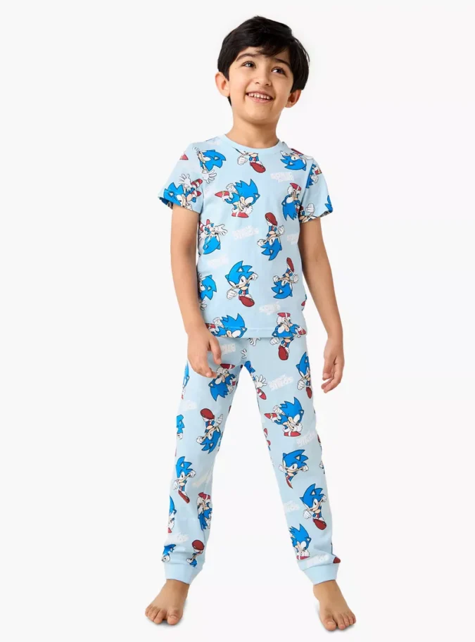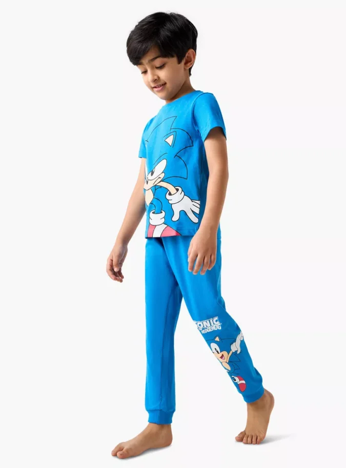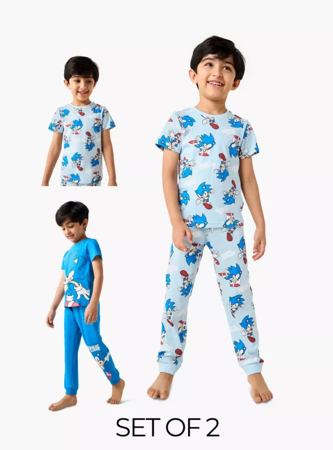 Bring fun and comfort together with this Sonic the Hedgehog Print T-shirt and Pyjama Set of 2. Perfect for casual wear, lounging, or bedtime, this set captures the adventurous spirit of the iconic video game character Sonic. Designed with vibrant prints and made from soft, breathable fabric, it ensures kids stay stylish while feeling cozy all day long. The set includes two coordinated outfits—both featuring bold Sonic-themed graphics that fans will love.