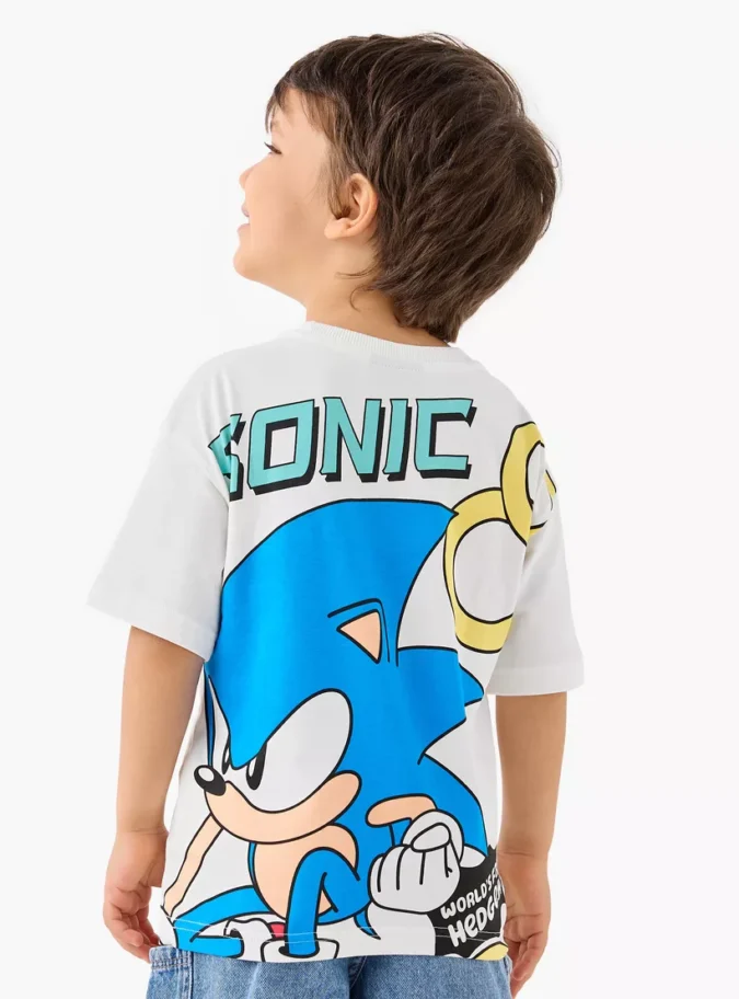 Sonic the Hedgehog Print T-shirt with Short Sleeves and Round Neck
