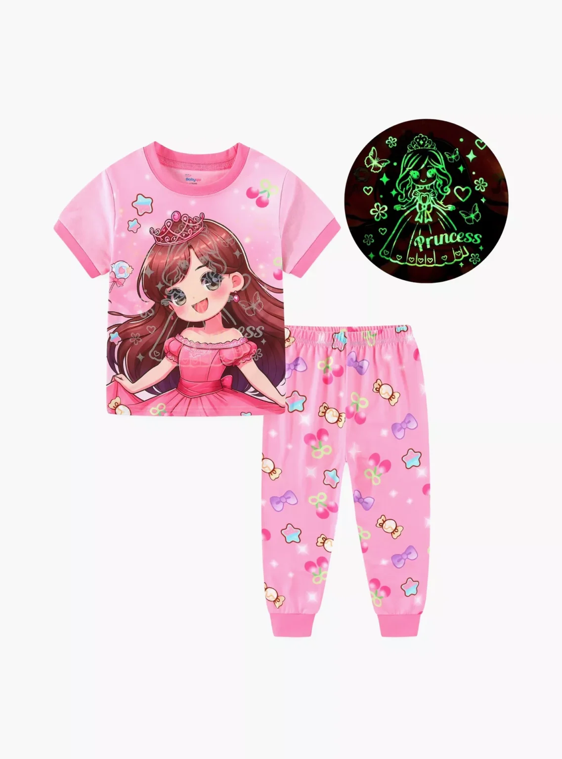 Sparkling Princess Printed Glow-in-the-Dark T-Shirt with Joggers