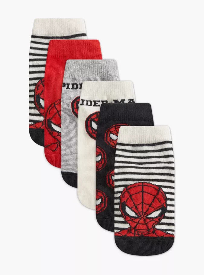 This vibrant set includes six pairs of socks featuring iconic Spider-Man designs, perfect for young fans of the web-slinging superhero. Crafted from a soft and breathable cotton blend, these socks ensure comfort throughout the day. Each pair showcases unique Spider-Man graphics, allowing children to express their fandom in style.