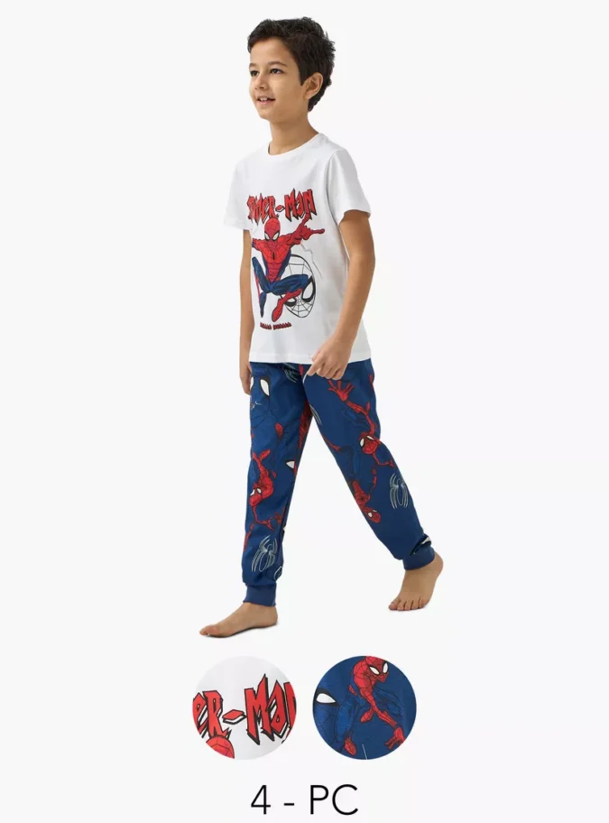 Bring superhero vibes to bedtime with this Spider-Man Print T-shirt and Pyjamas Set of 2. Designed with comfort and style in mind, this set is perfect for kids who love Marvel’s friendly neighborhood hero. Each piece features bold Spider-Man prints that add fun and character, making bedtime or lounging even more exciting. Crafted from soft and breathable fabric, the set ensures maximum comfort whether worn during sleep or as casual loungewear.