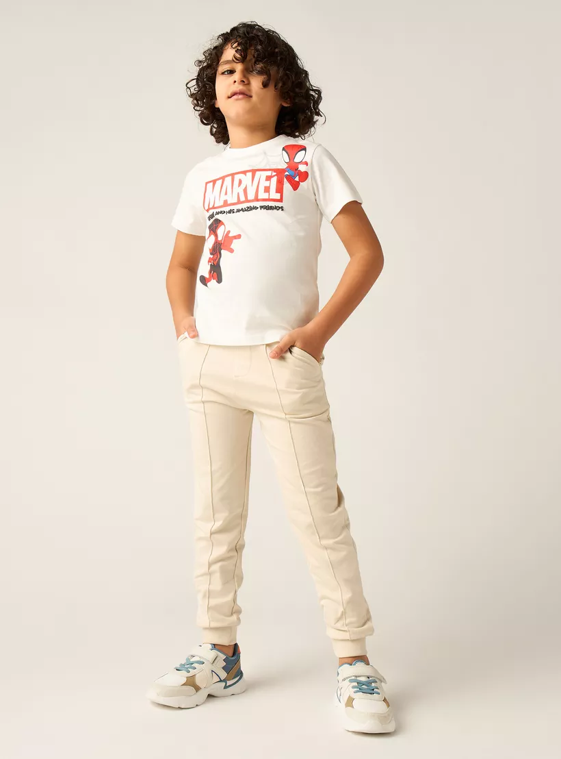 Spider-Man Print T-shirt with Short Sleeves and Crew Neck