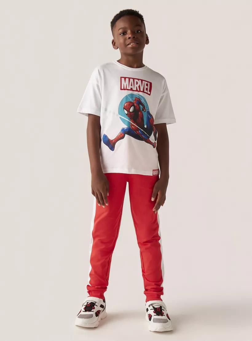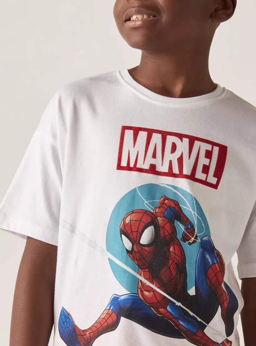 Spider-Man Print T-shirt with Short Sleeves and Crew Neck