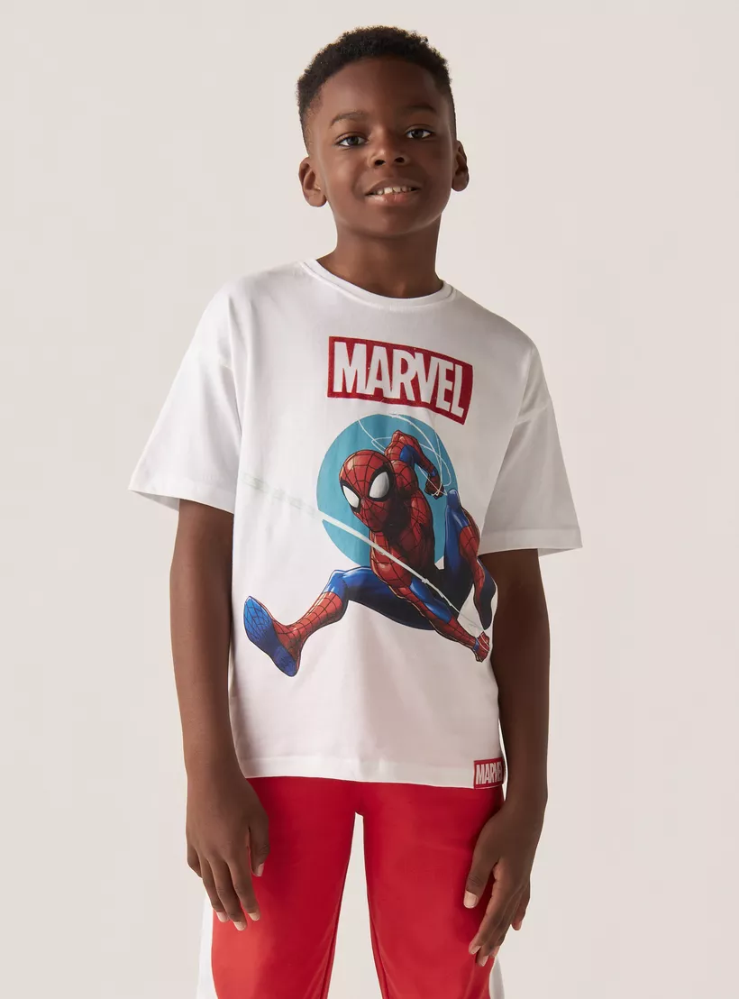 Spider-Man Print T-shirt with Short Sleeves and Crew Neck