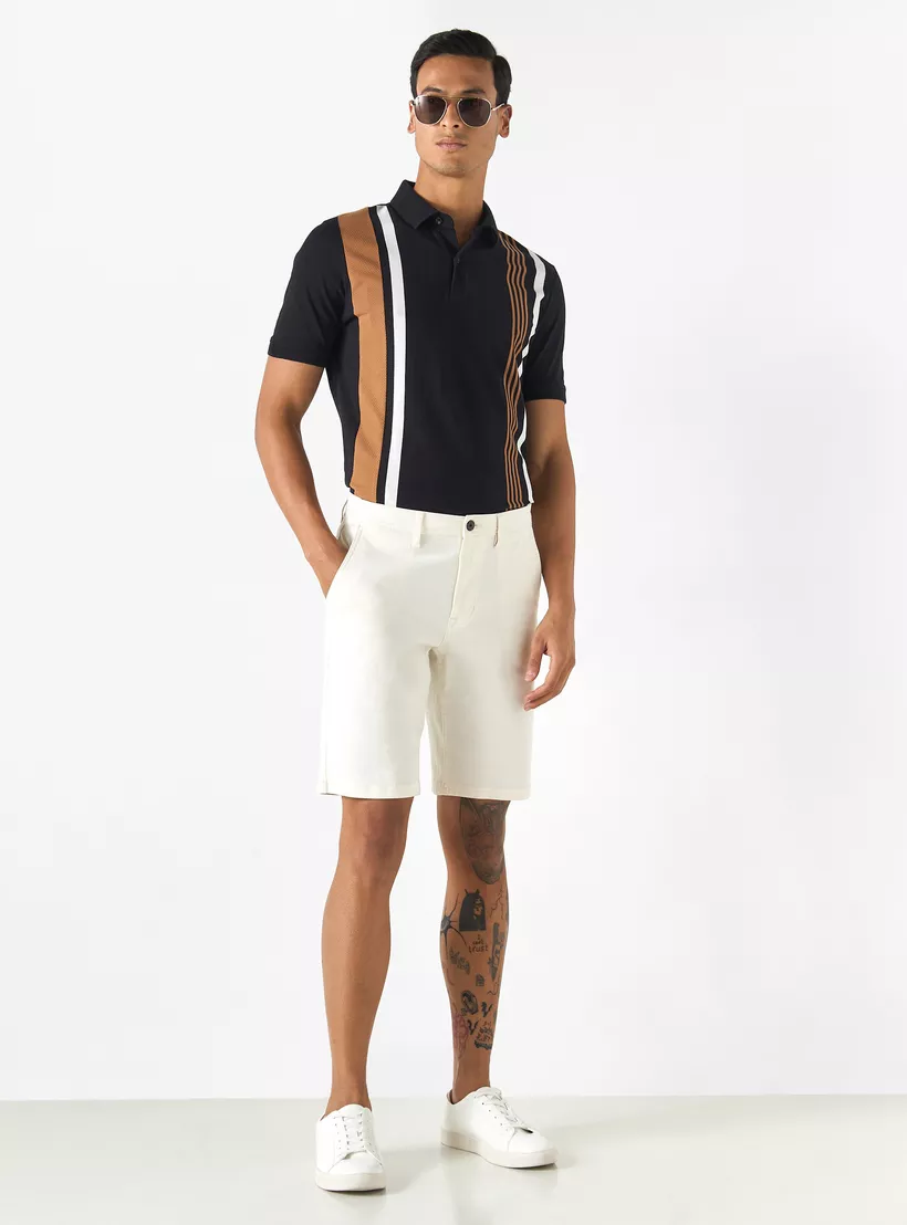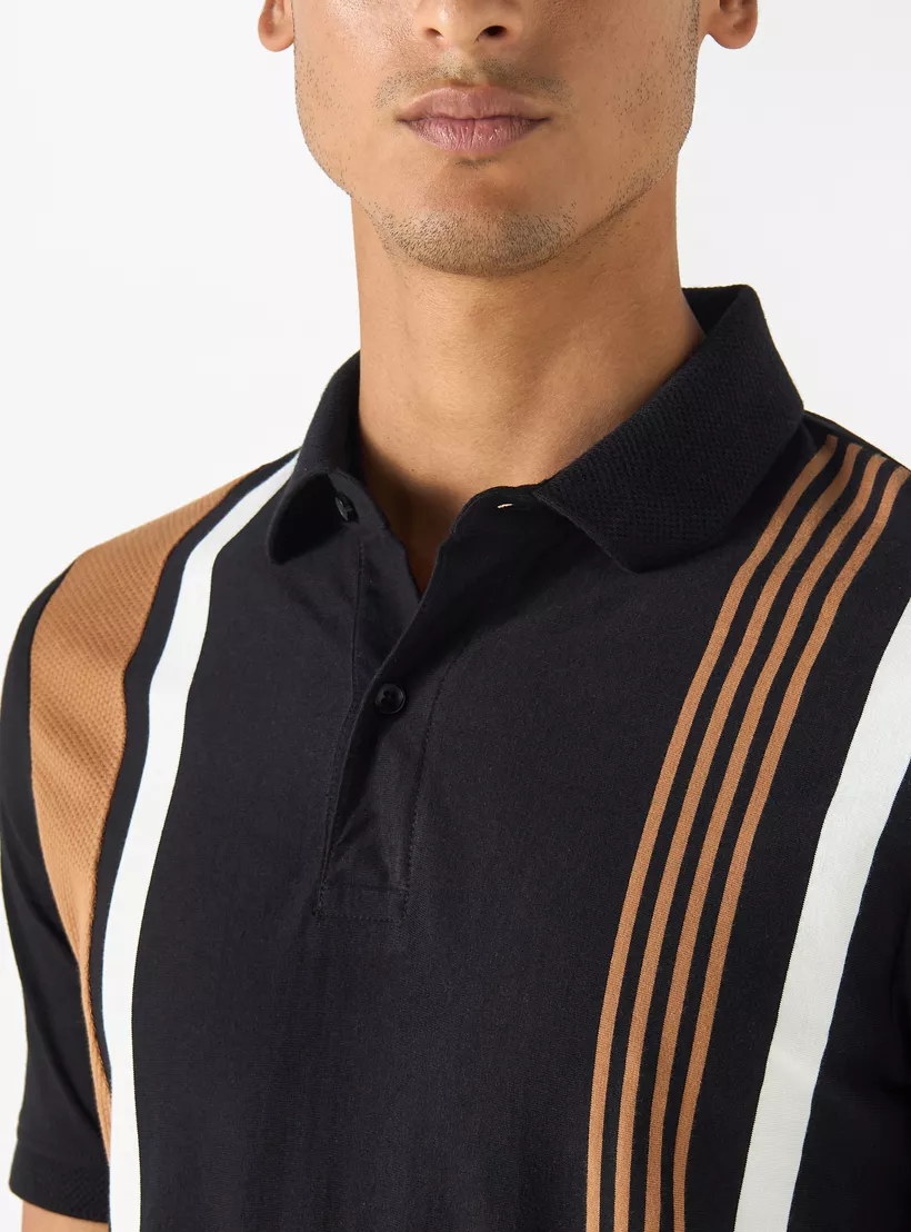 Look effortlessly dapper in this striped polo tee. Designed in a slim fit with a collared neckline, this cotton tee is soft against the skin and provides a breathable feel. The striped pattern adds a touch of sophistication, making it perfect for any occasion.