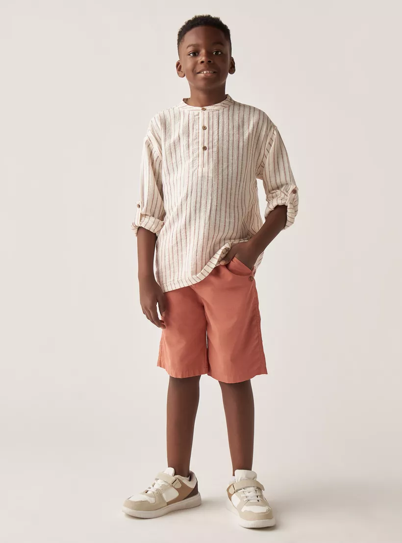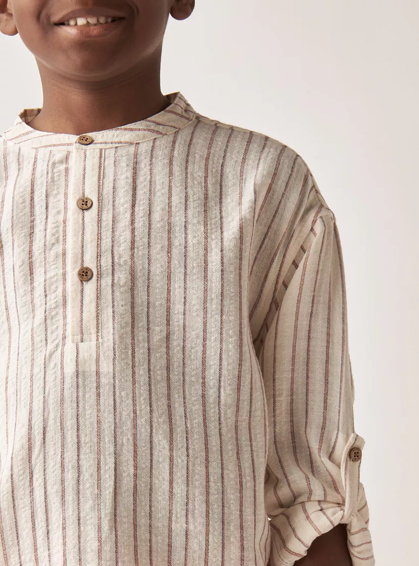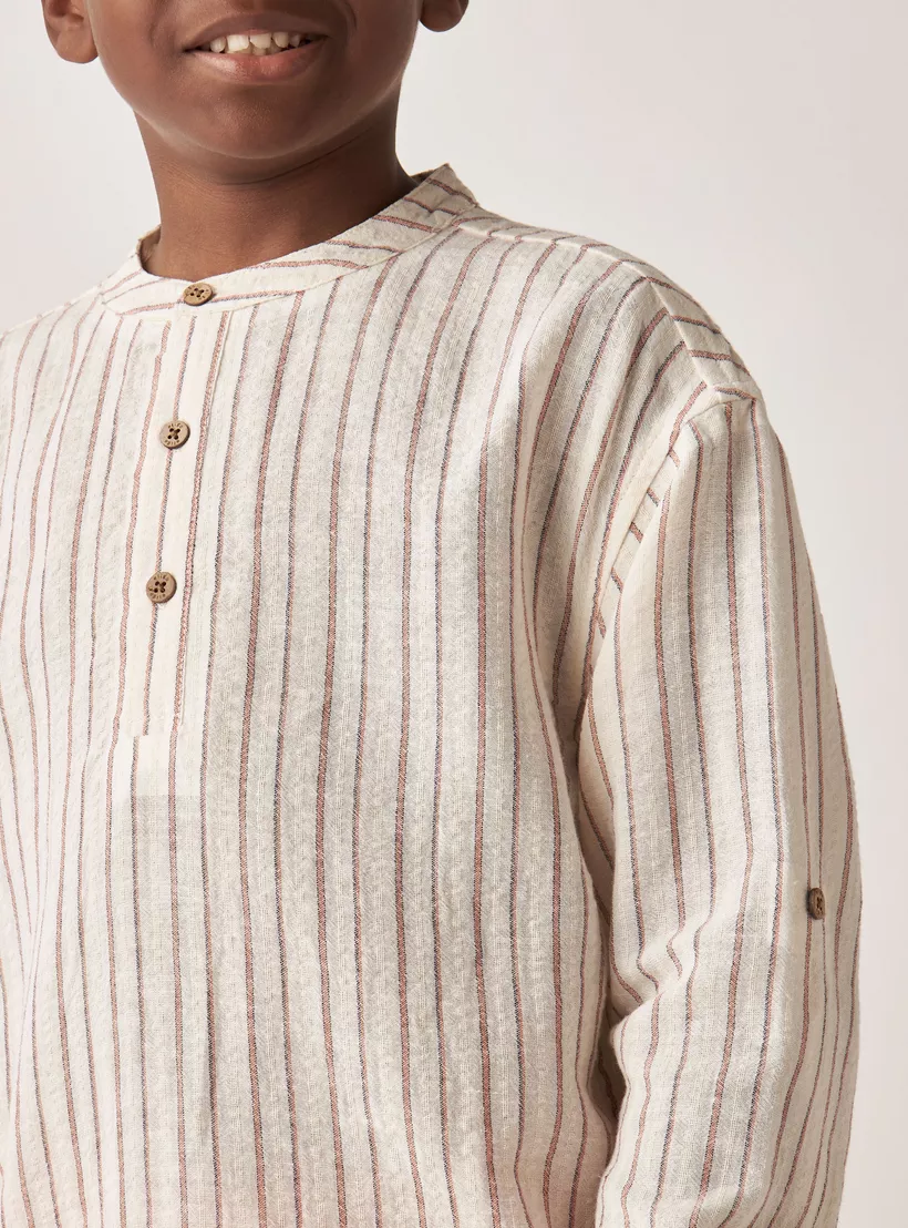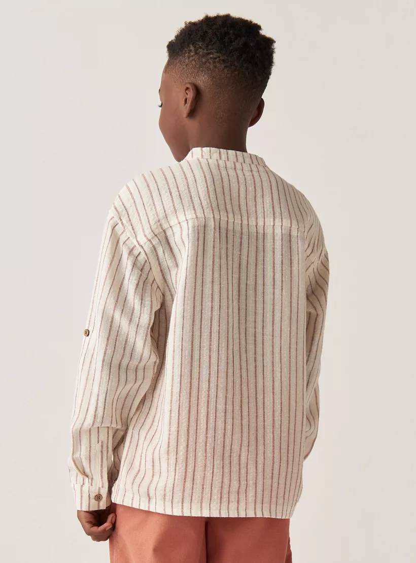 Striped Shirt with Mandarin Collar and Long Sleeves