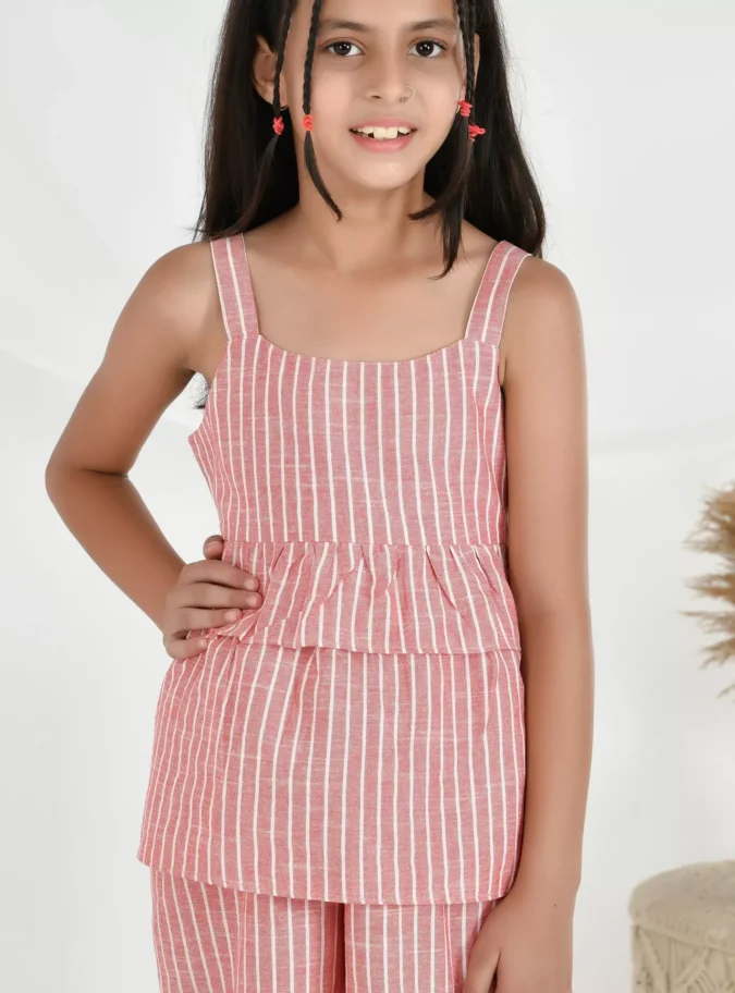 The Striped Top and Palazzo Set is a stylish and versatile outfit that blends comfort with elegance. Designed with a modern striped pattern, this coordinated set includes a chic top paired with flowy palazzo pants, offering a flattering silhouette for all body types. Perfect for casual outings, office wear, or semi-formal gatherings, it gives you a trendy yet effortless look.