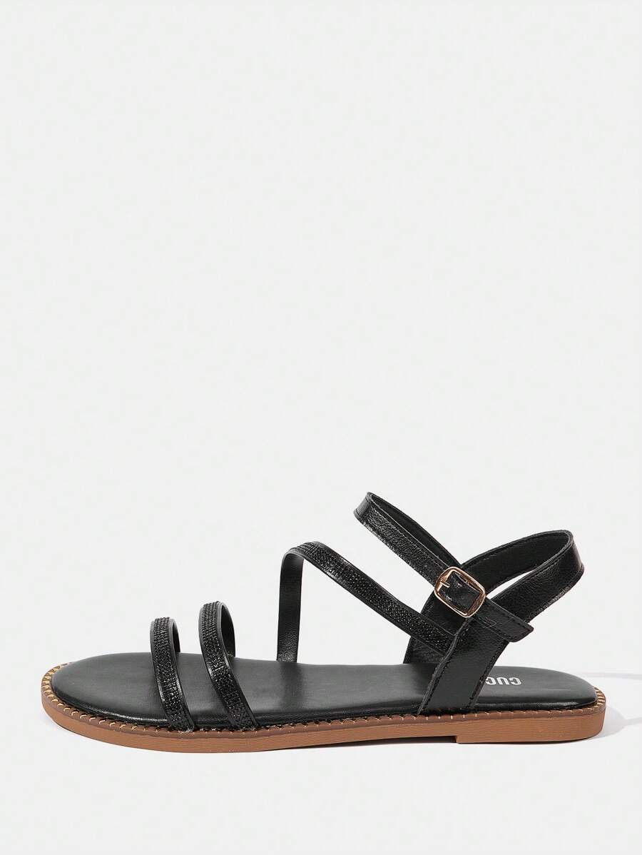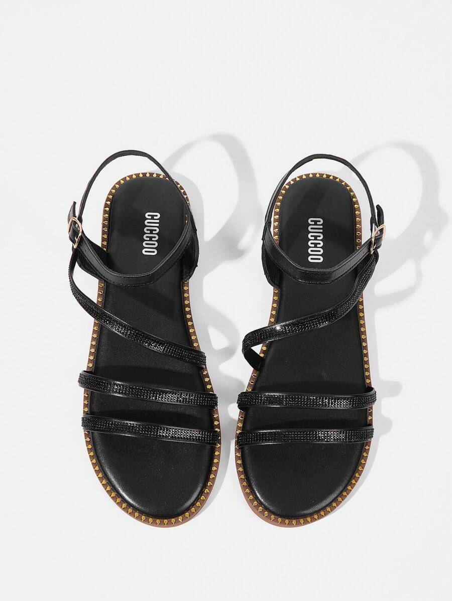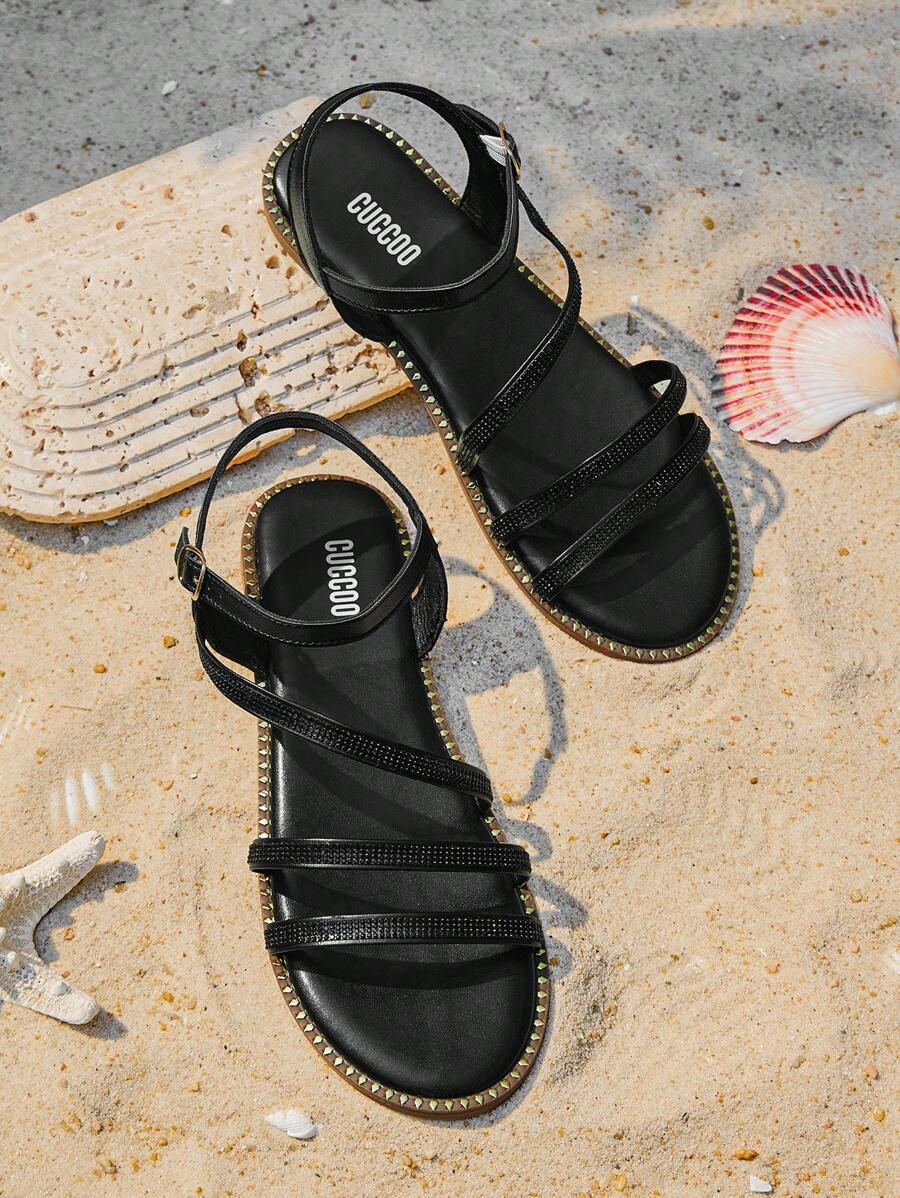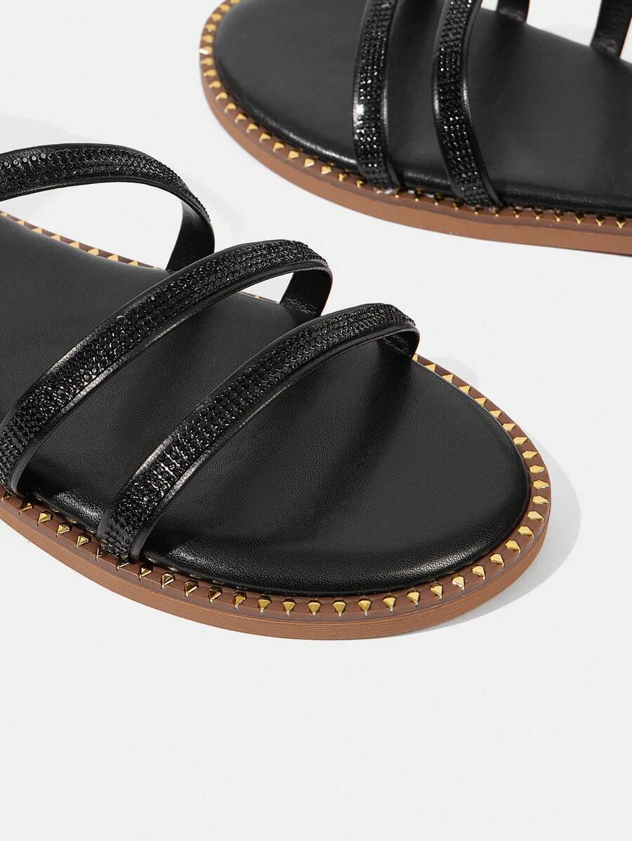 Styleloop Women’s Casual Versatile Minimalist Rhinestone Decor Flat Sandals Spring Summer Shoe Sandals For Women