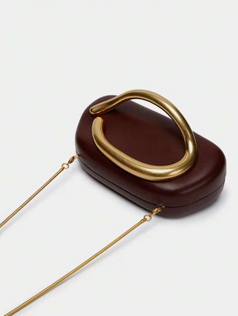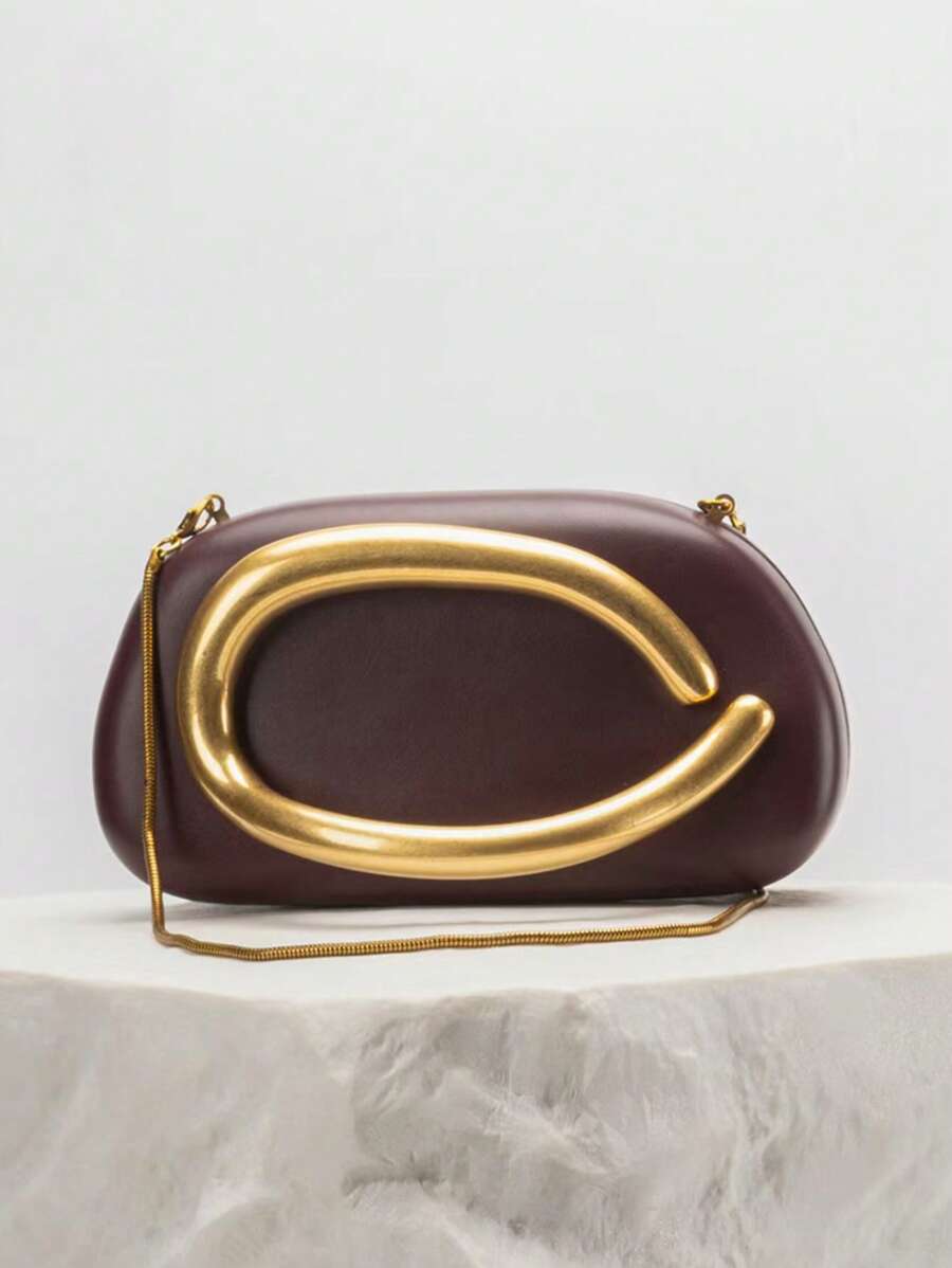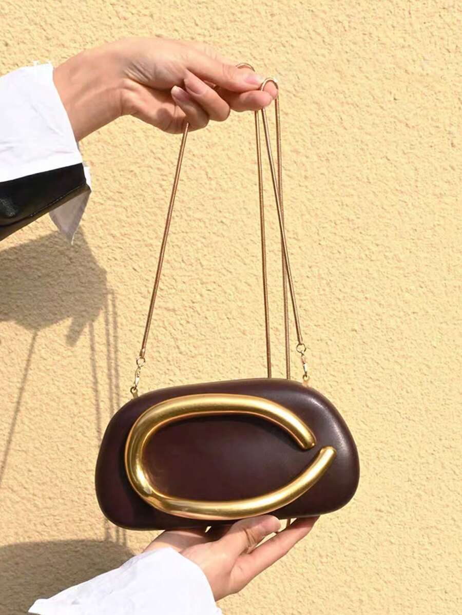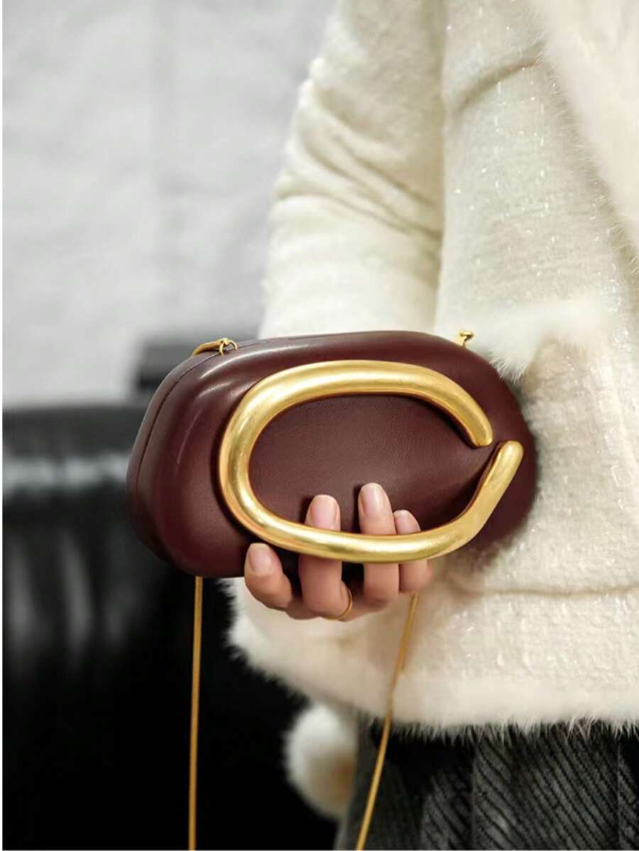 Stylish And Simple Metal Buckle Decorative Clutch Bag, Dinner Bag, European And American Retro Dinner Bag, Metal Chain, Box Bag, Suitable For Parties., Bags Ladies Elegant, Bag For Women Elegant, Luxury