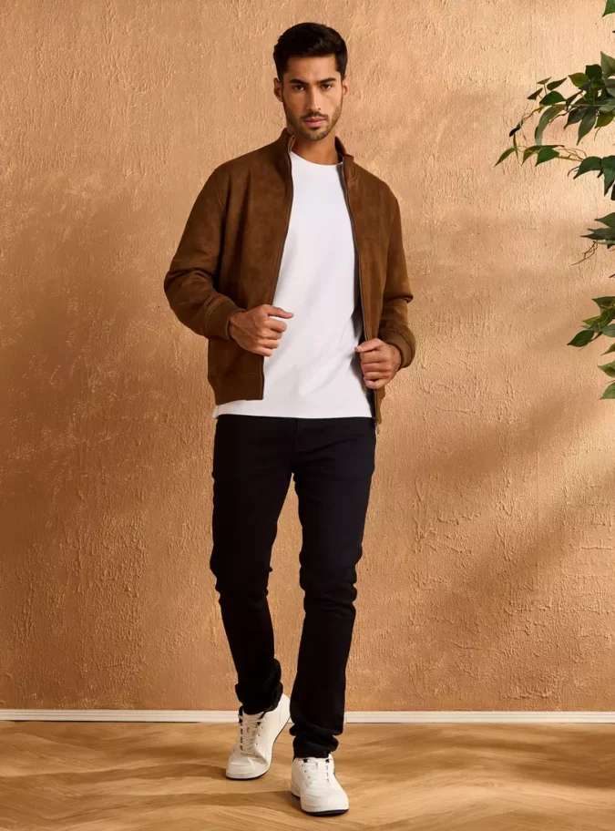 • Classic Bomber Design: Ribbed collar, cuffs, and hem for timeless silhouette