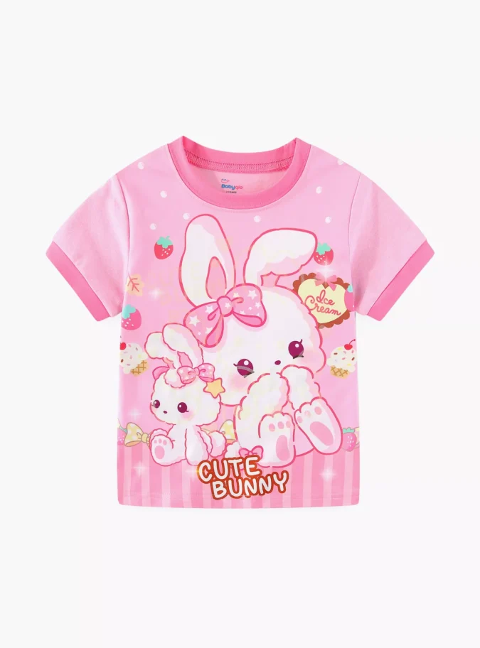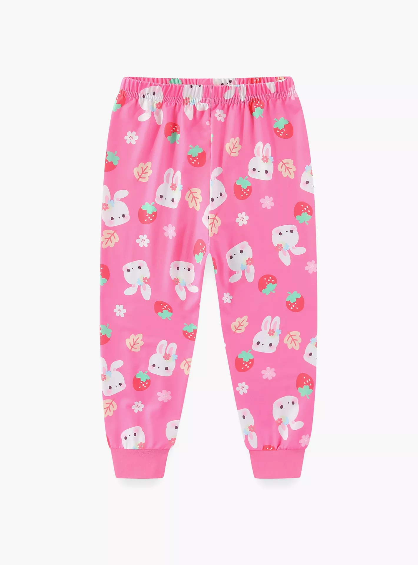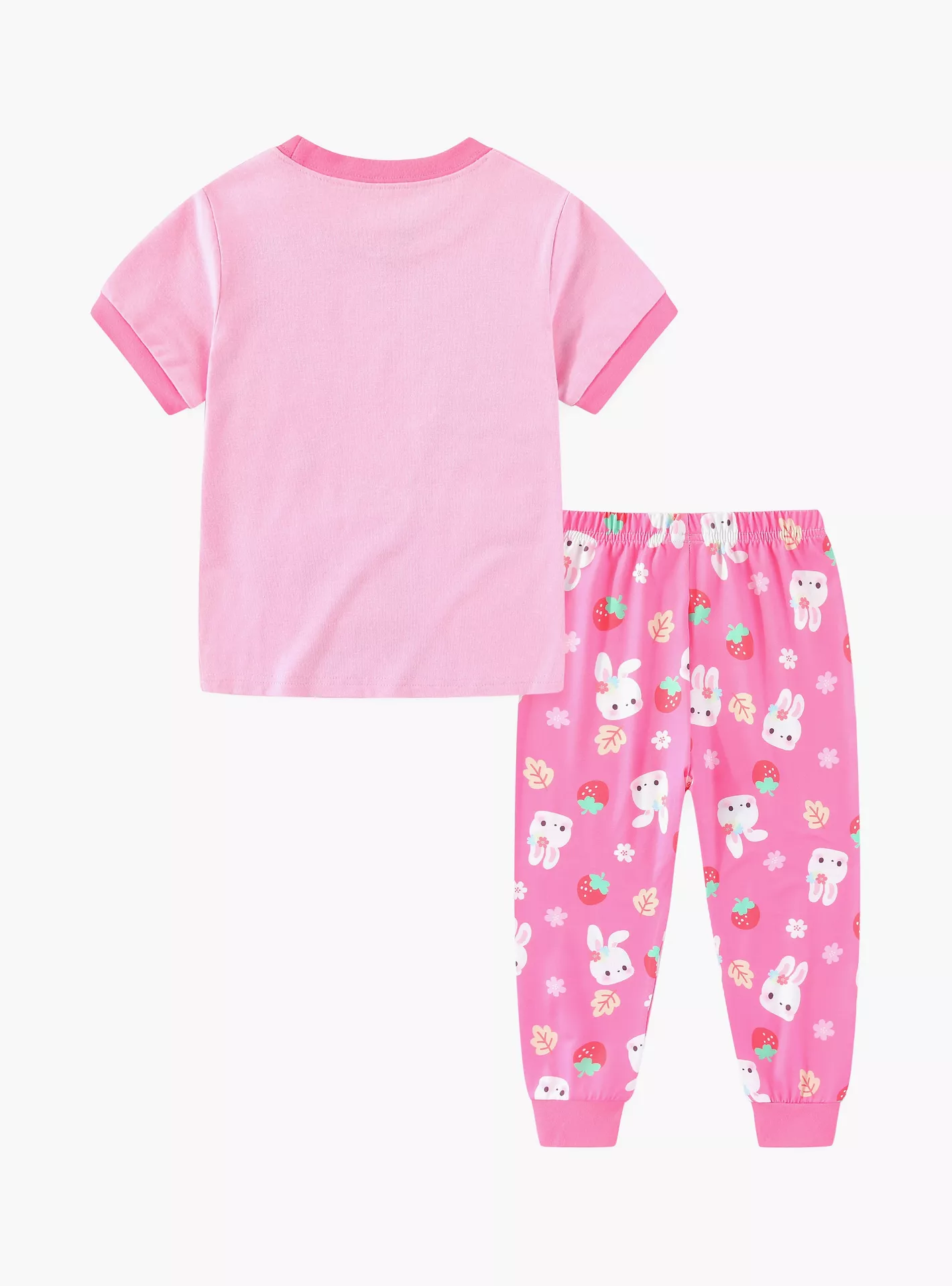 Sweet Bunny and Berry Fun Printed Glow-in-the-Dark T-Shirt with Joggers