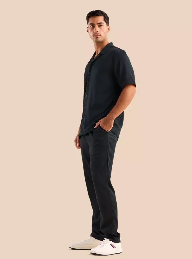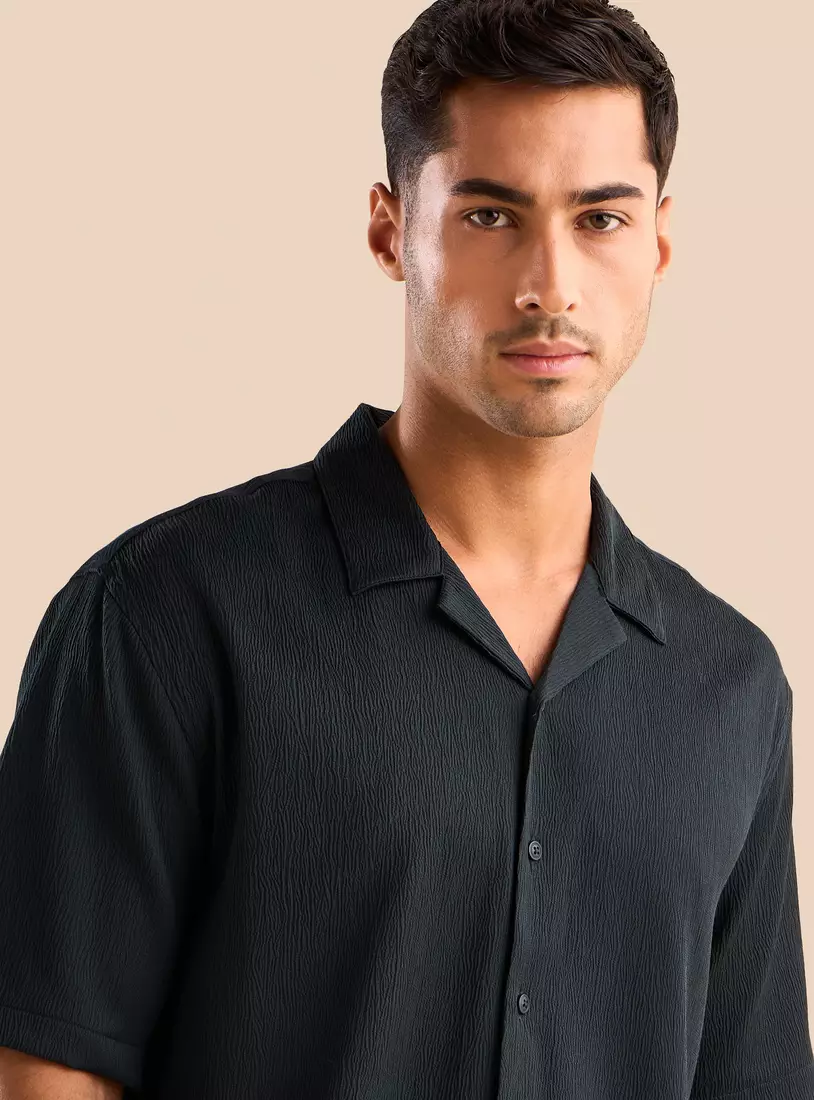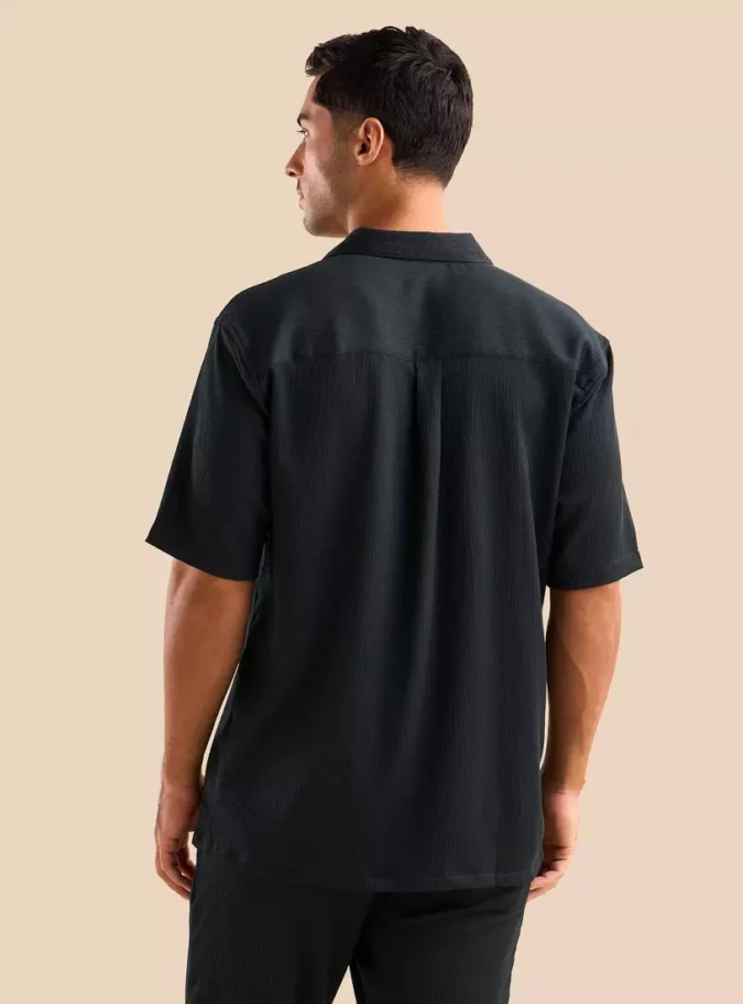 Camp collar design adds a relaxed, resort-inspired touch