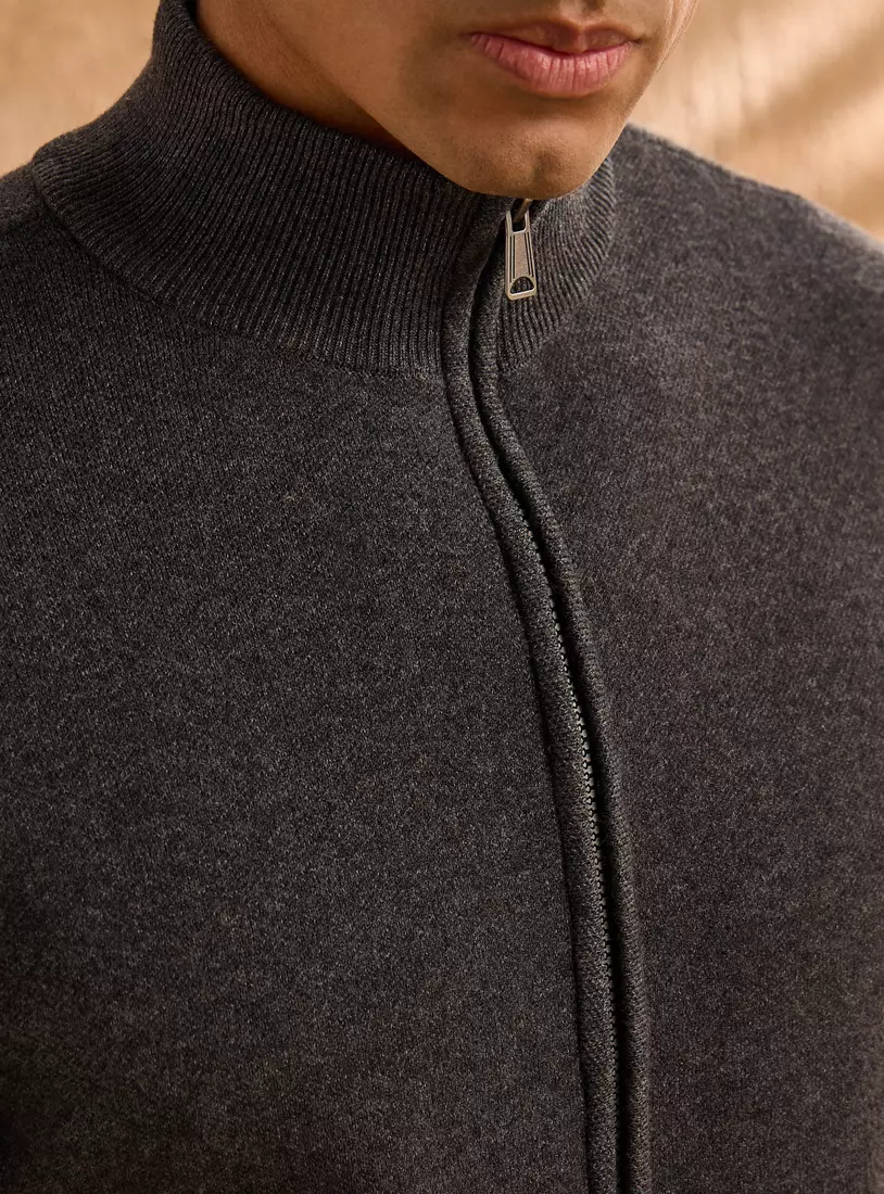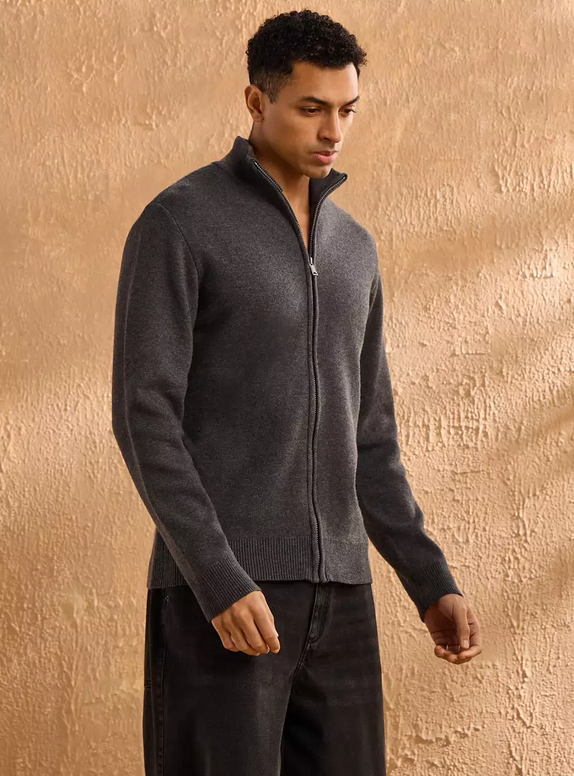 • Versatile for styling: Can be dressed up (with tailored trousers or skirt) or dressed down (with jeans and sneakers) — texture and high neck elevate the basic cardigan.