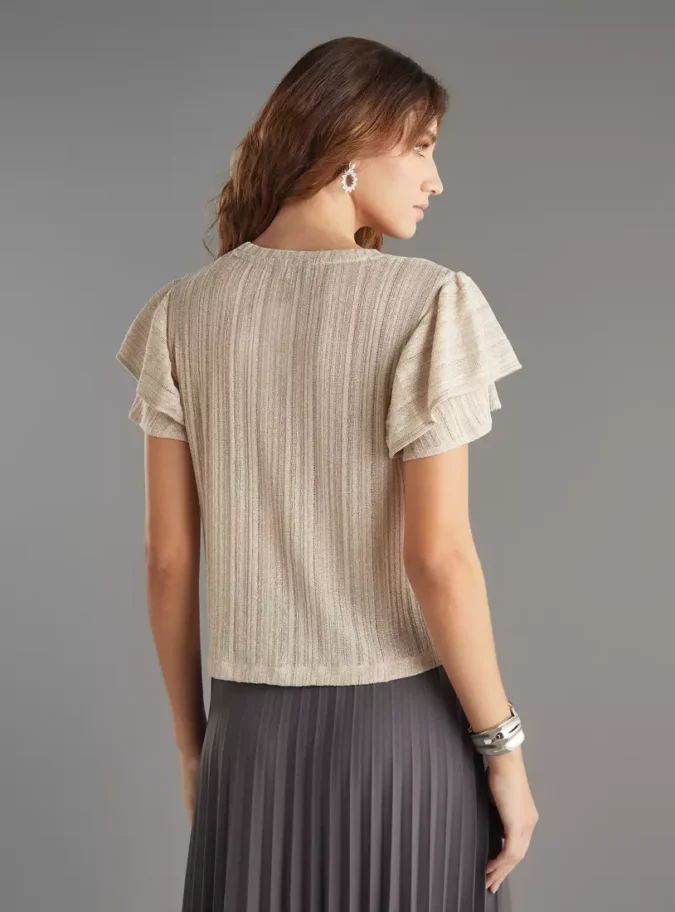 Seasonless Appeal: While often associated with holiday and party seasons, a textured Lurex top can be worn year-round. It’s perfect for cool summer nights, holiday parties in the winter, and transitional weather in spring and fall.
