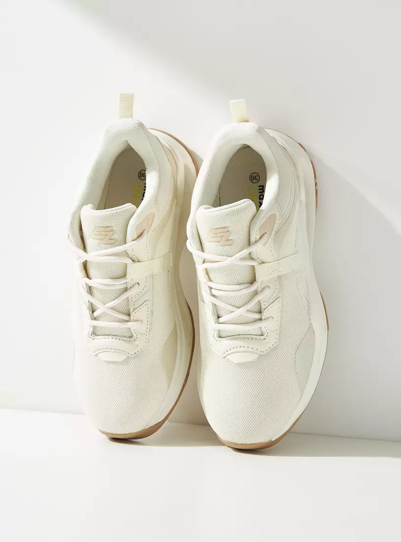 Textured Sports Shoes with Lace-Up Closure and Pull Tabs